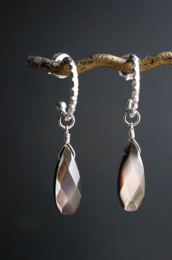 サージカルステンレス ピアス 508 黑蝶ブラックシェル ハーフフープピアス 金属アレルギー対応金具使用 ブラックジュエリー 收藏