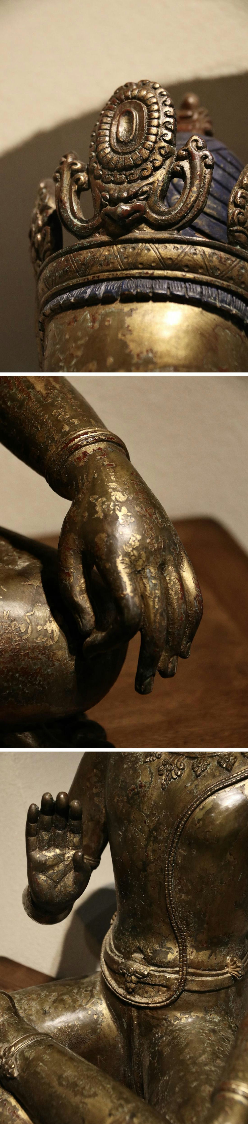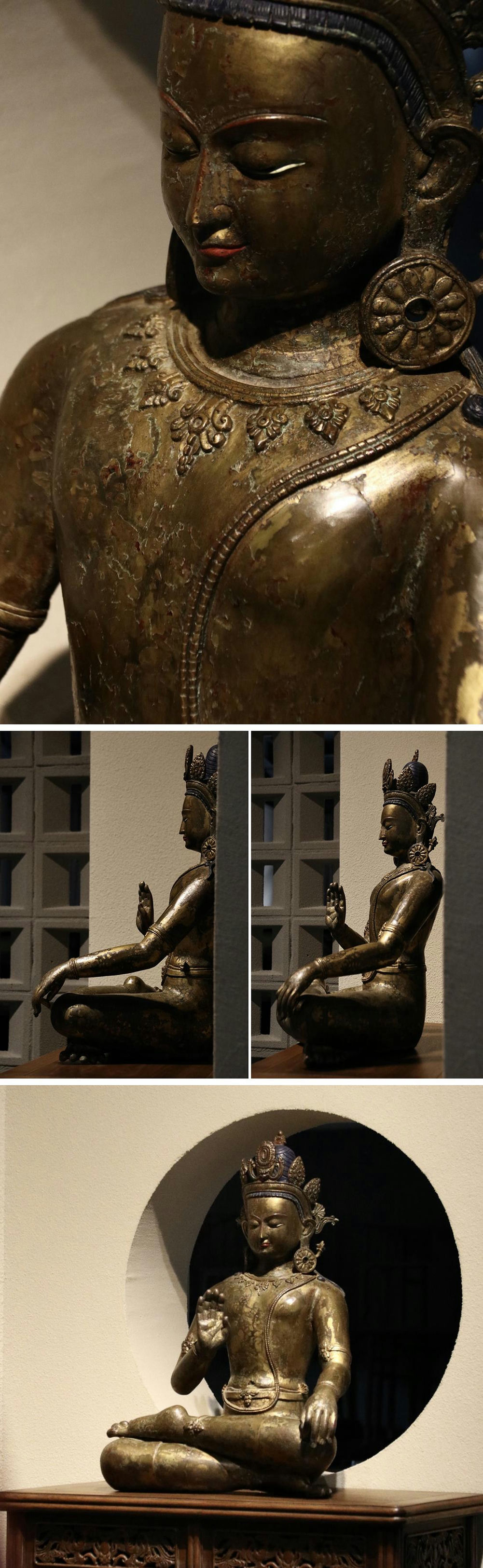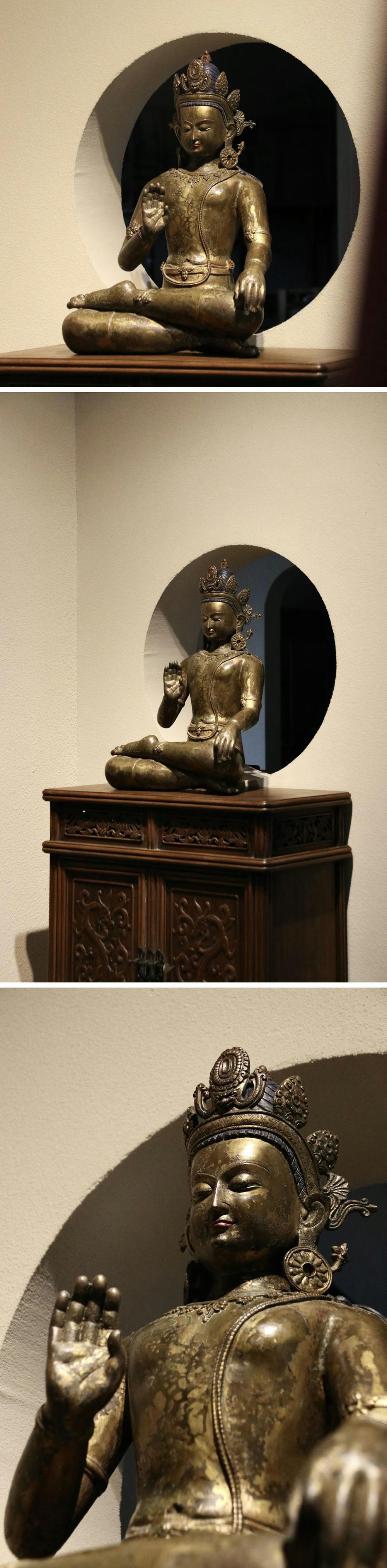 ■観心・時代旧蔵■T9839清時代 自在観音 銅塗金 細工彫刻★仏教古美術★仏像★細密細工★廃寺旧蔵★廃寺買出品 收藏