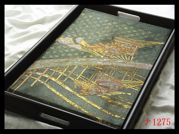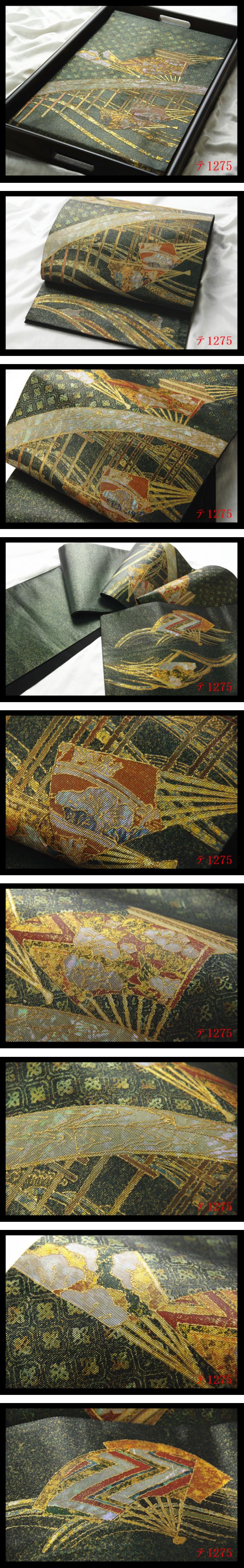蔵【テ1275】厳選逸品 螺鈿箔 扇面古典紋 虫襖色地 気品豊かに 正絹太鼓柄高級美術袋帯 ◇検簪着物名古屋帯和装小物帯締め 收藏