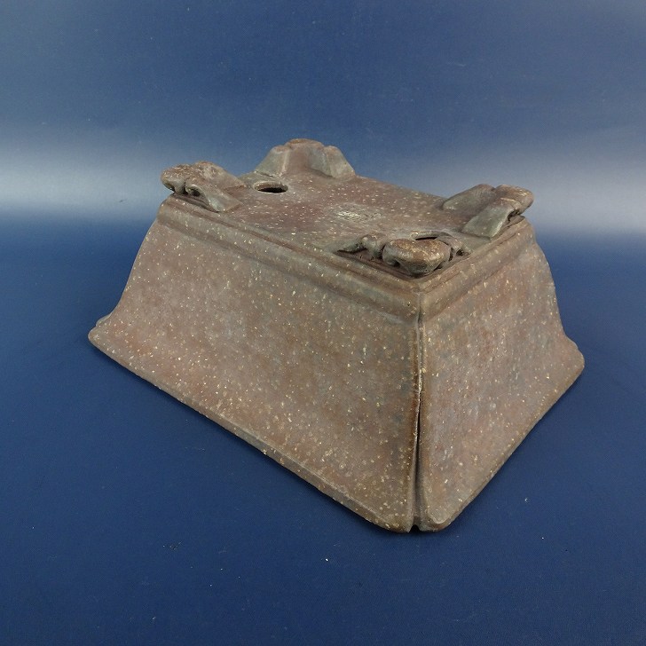 【中古】盆栽鉢 落款あり 小型 長辺 約16.2cm 長方鉢 外縁 隅入下帯 泥物 現品 中古鉢 收藏