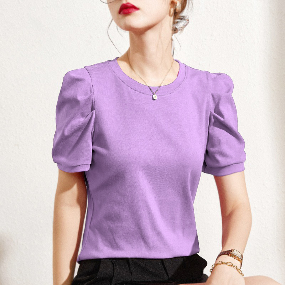 ☆ パープル ☆ Lサイズ カットソー 半袖 レディース きれいめ 通販 tシャツ シャツ パフスリーブtシャツ トップス 無地 ゆったり カジュ 收藏