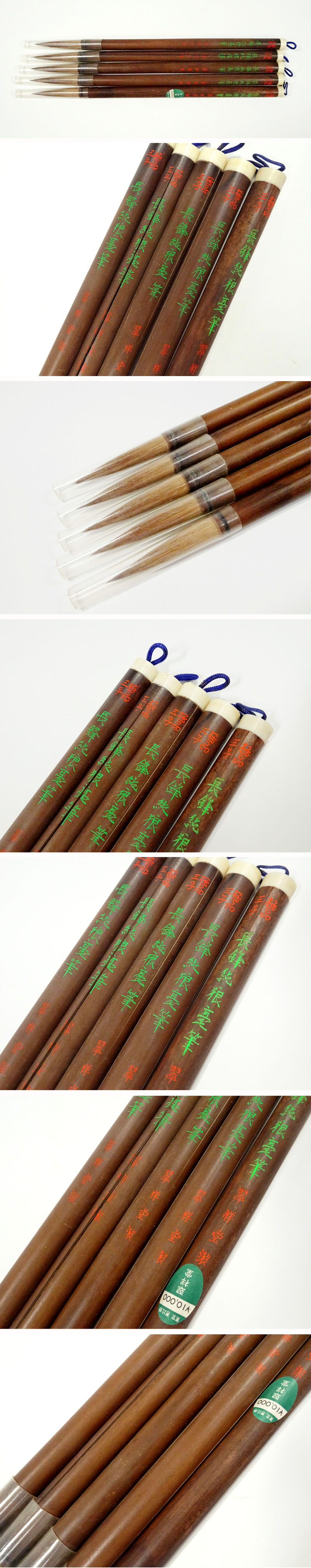 【敬逢】秀逸 書道具 翠祥堂製 長鋒純狼毫筆 極品三号 高級イタチ 鼬 毛筆 5本組 定価1本 10,000円 未使用品 端渓硯老坑古墨 1 收藏