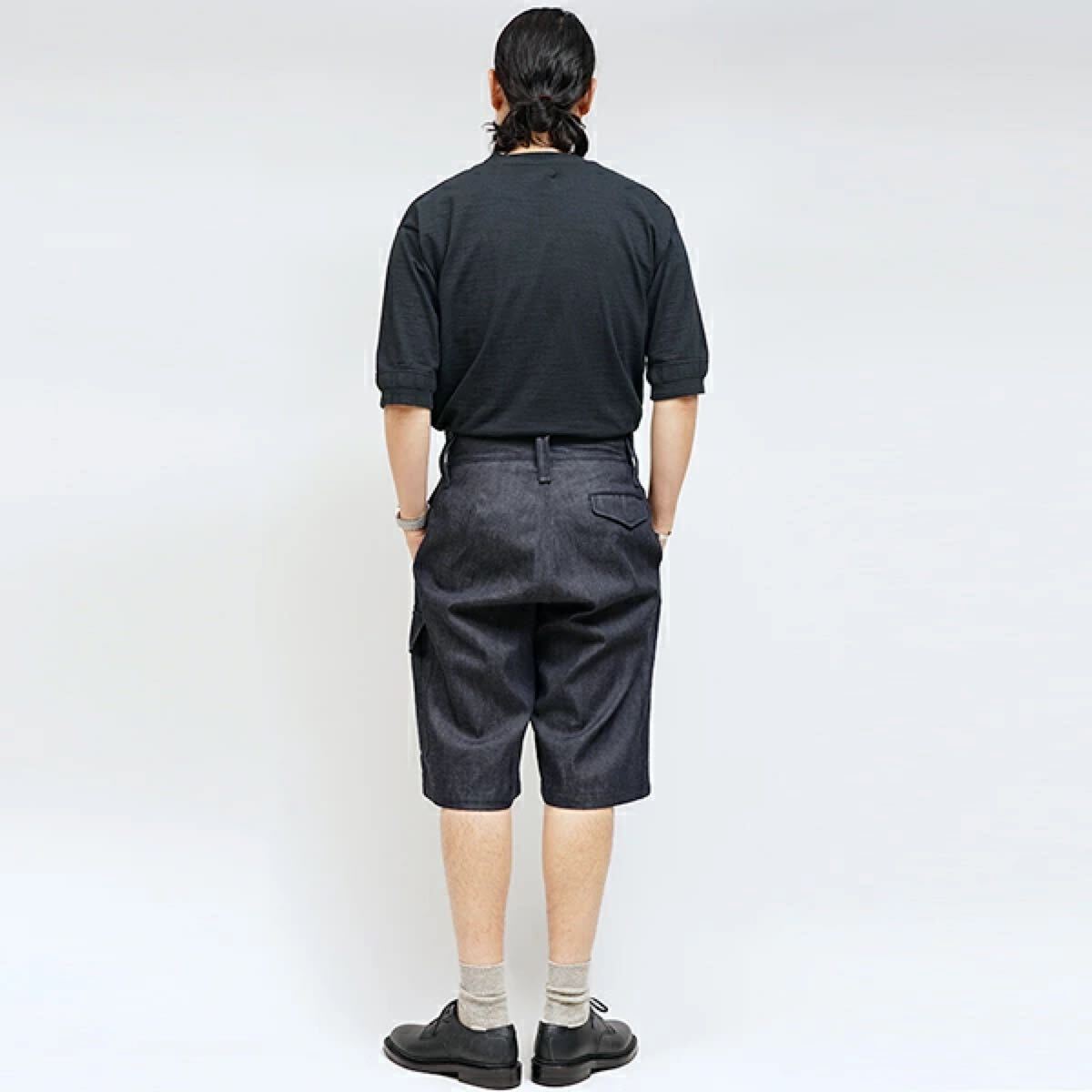 かつてイギリス軍が運用していたバトルドレスパンツのショーツタイプのデザインに、ブランド・オリジナルの10オンスのデニム生地を使用したモデルです。