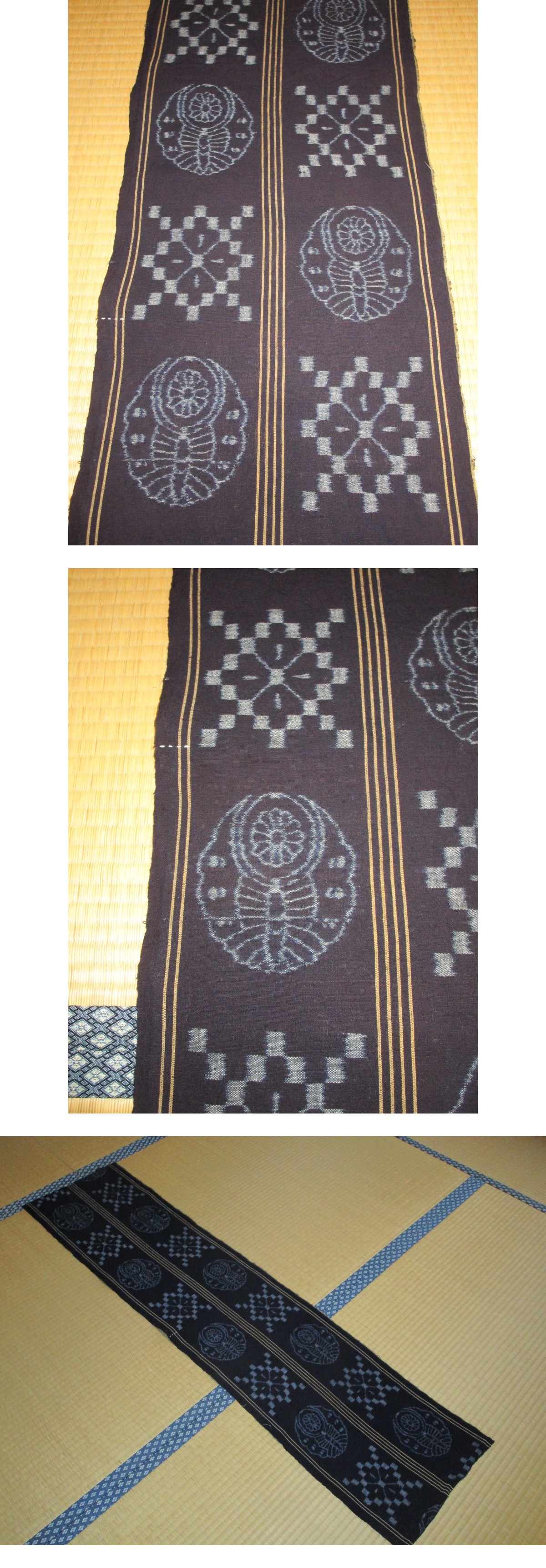 【昔古布】大正期 無傷で 美品 厚手の 藍染手織木綿 絵絣1幅 (長145) ●揚羽蝶・菊・幾何学● 收藏