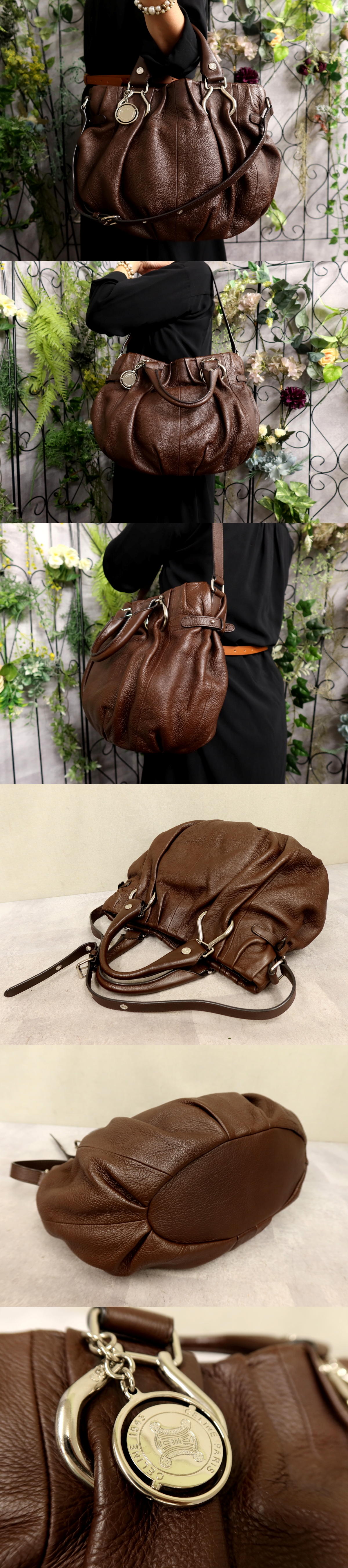 ●超美品●CELINE セリーヌ●ピローバッグ●2ハンドル●カーフ レザー 本革●トート バッグ●ダークブラウン●シルバー金具●B5●Js60822 收藏