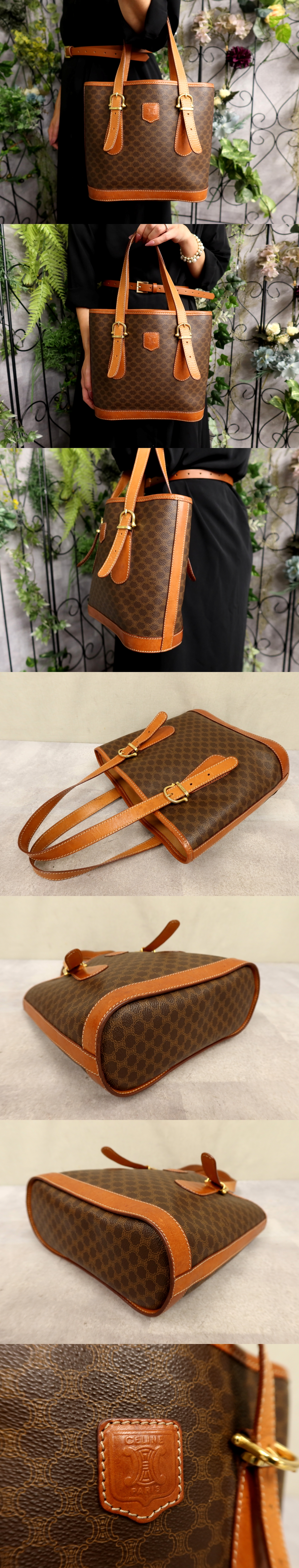 ●超美品●CELINE セリーヌ●マカダム●PVC カーフ レザー 本革●ハンド バッグ●ブラウン系●ゴールド金具●ヴィンテージ●収納●Js60910 收藏