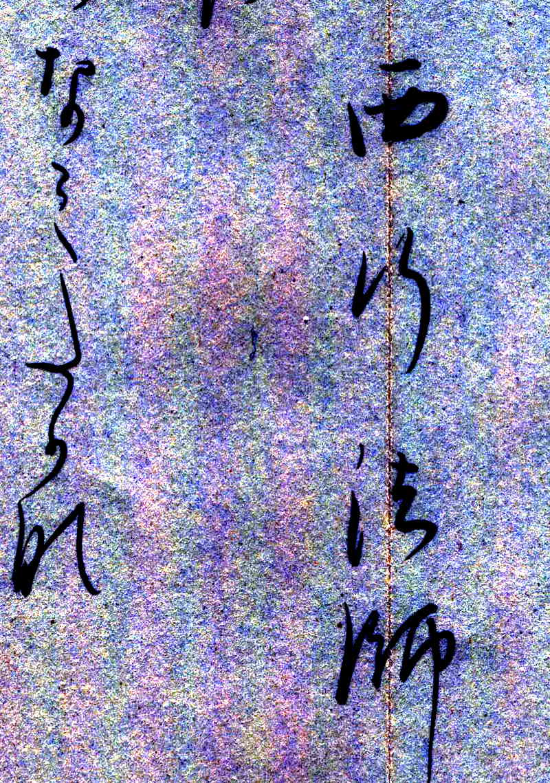 入手したものであることがわかりました。日本の和紙は(す)く製法であるため和紙の繊維が断層画像写真によって一本一本が立体的に見えます。オランダ渡来の髪と性質が異なるのはこのためです。は茶会用の掛軸から外され海外展示のために再表装をしております。掛軸や屏風にすることが可能なように、「Removable Paste(再剥離用糊)」を使用しているため、自筆の書に影響をあたえずに、容易に「剥離」することができるような特殊な表装となっております。 |
