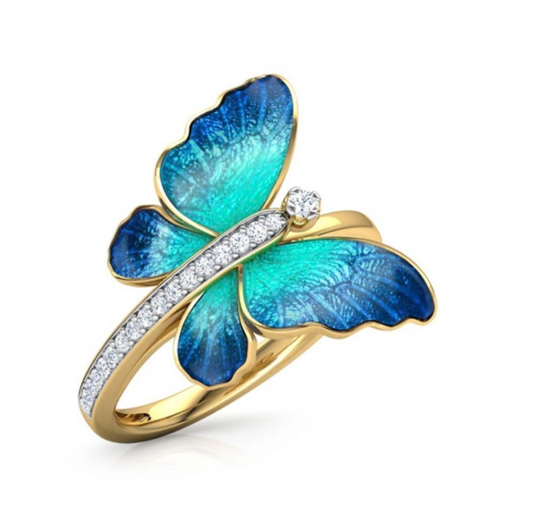 61-6 新品 指輪 バタフライ レディース ゴールド 蝶々 アニマル 可愛い リング ブルー お洒落 人気 デザイン ギフト プレゼント 收藏