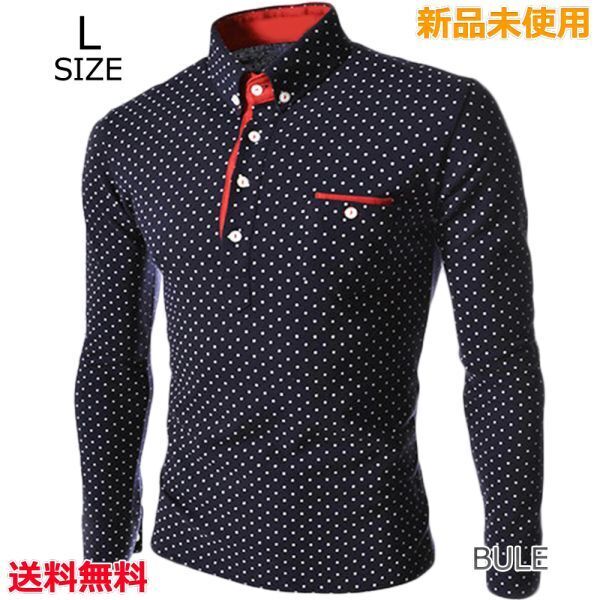 ゴルフウェア メンズ 長袖 ポロシャツ 水玉 ブルー L 收藏