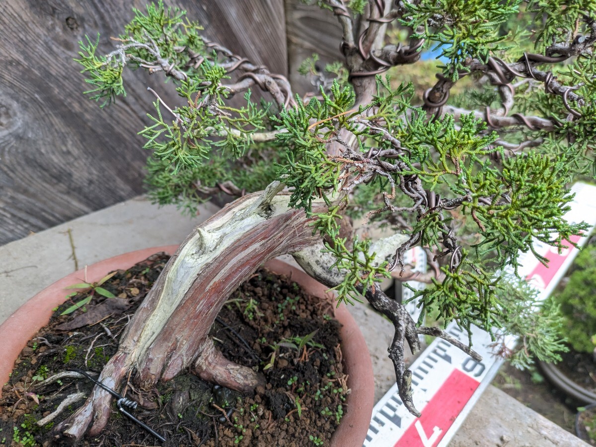 およそは55x45x40cmの枠に入るサイズ。根本付近からの高さは28cmくらい。他の方がジン シャリを作り磨いた木を入手して 枝を切りサイズを小さく作り直してます。鉢は長年で老朽化してます。| 出价者 | 信用 | 价格 | 时间 |