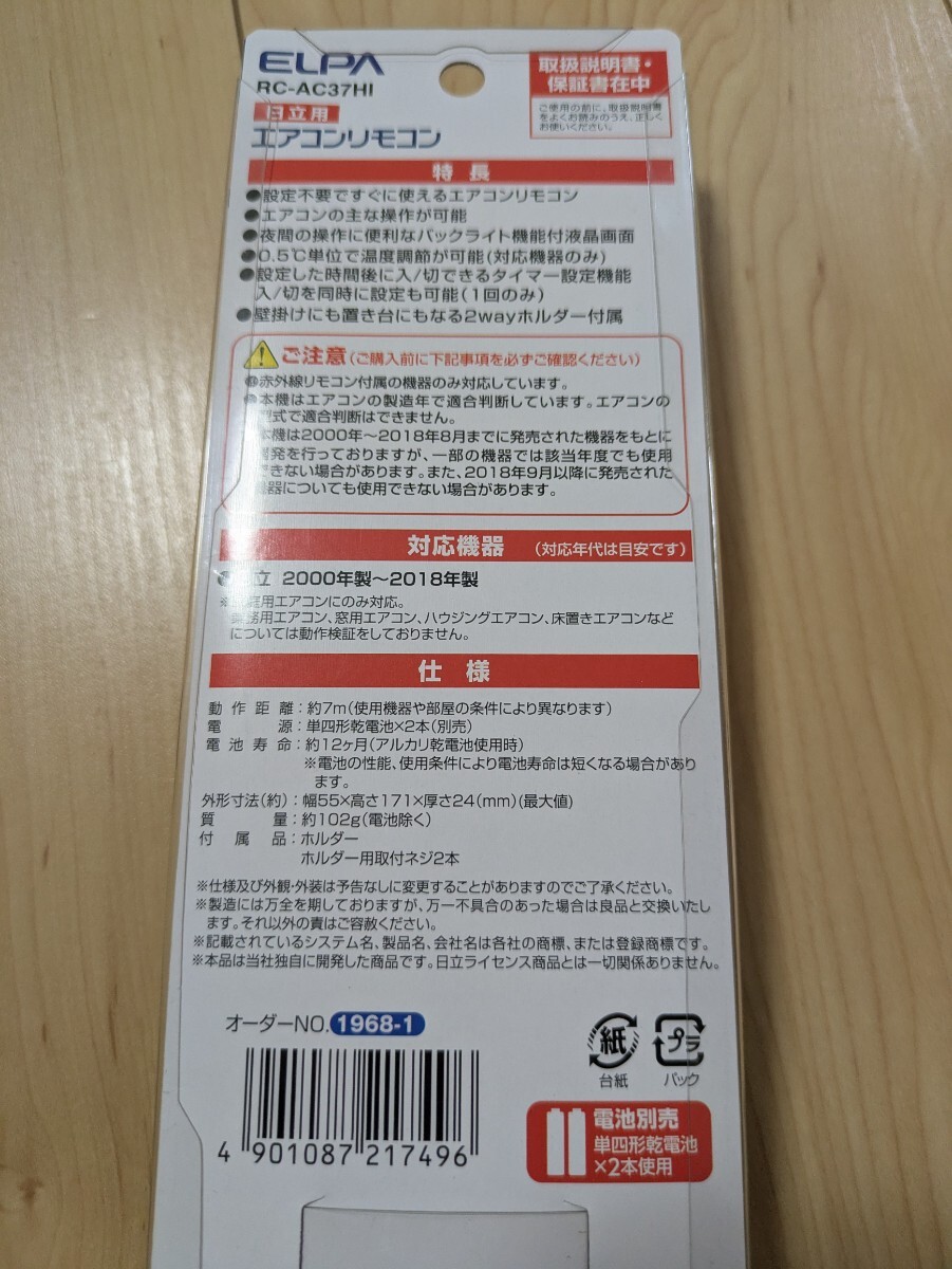 7/13にノジマにて3278円で購入し一度電池をいれましたが、エアコン本体が壊れていた様で買い替えたので、使い道がない為出品します。