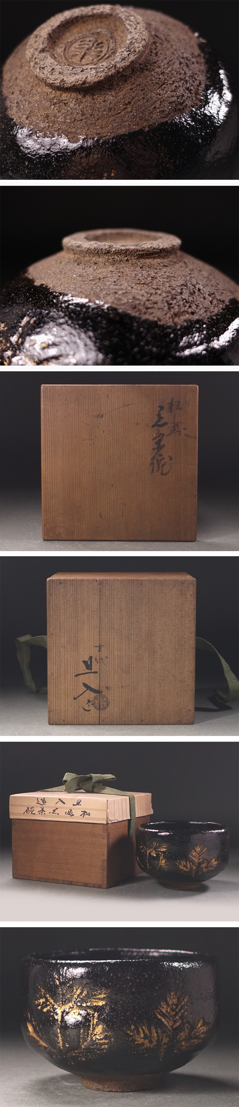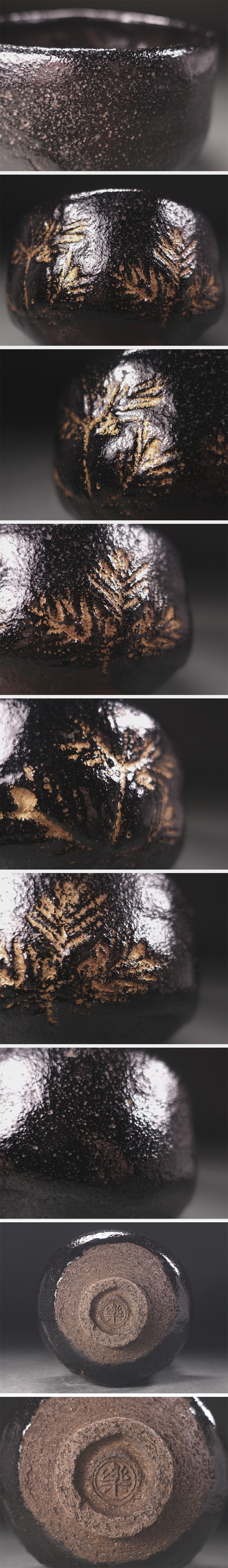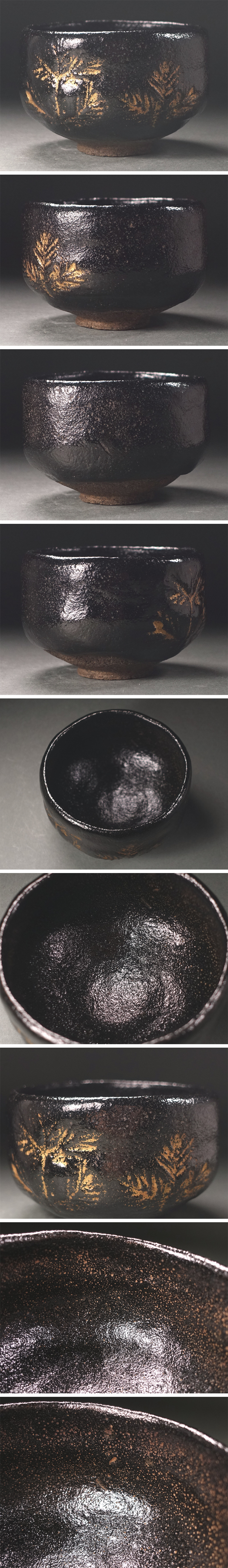 ∇花∇江戸時代後期【十代楽吉左衛門(旦入)】作 金彩松之画黒楽茶碗 共箱付 格別の作振り 收藏