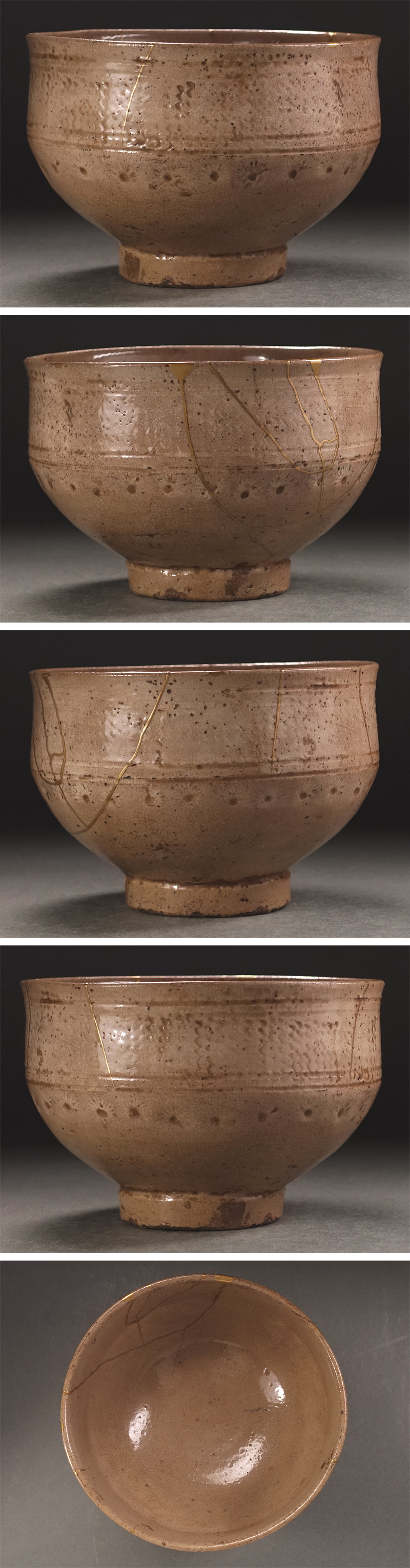 ∇花∇李朝時代中期 高麗御本三嶋(三島)茶碗 金繕いの妙 秀逸朝鮮茶道具 收藏