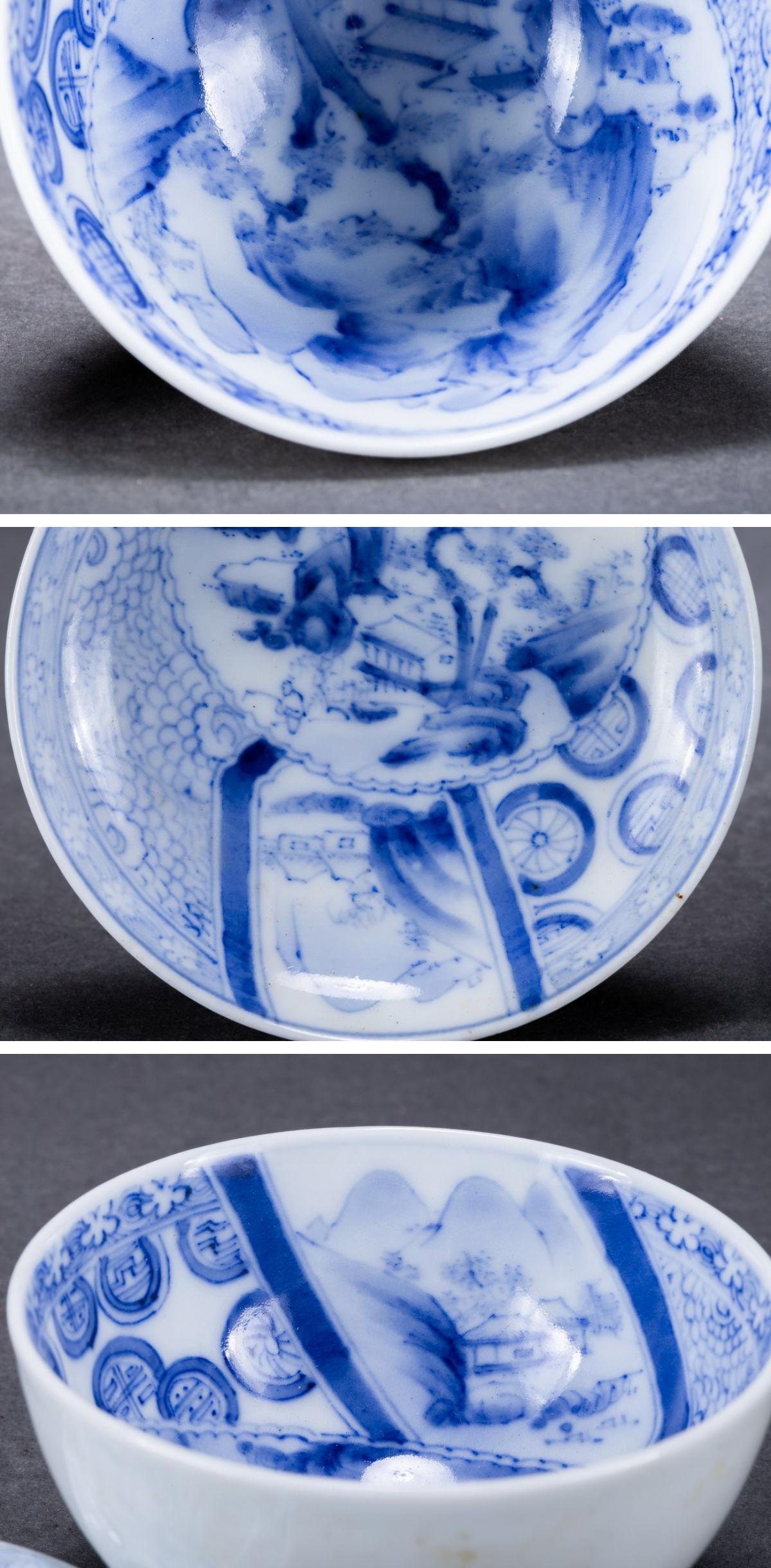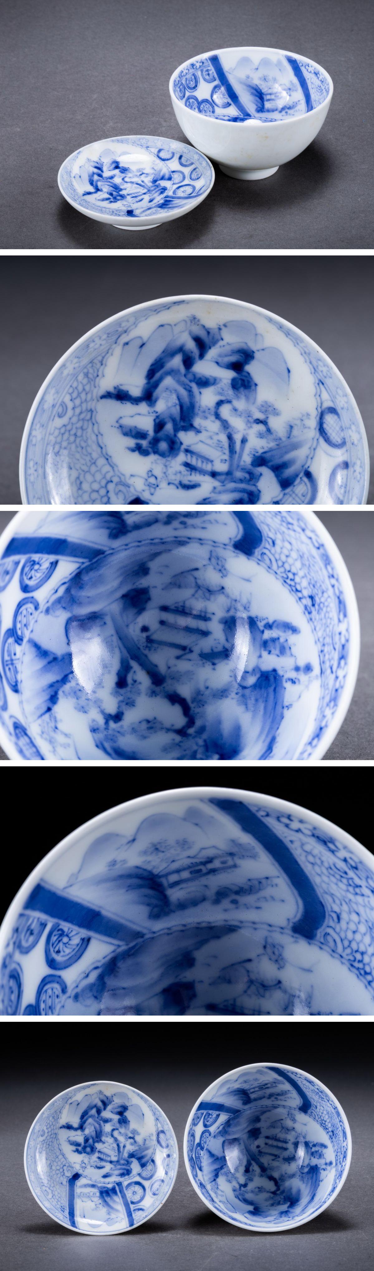 【華】時代舊藏 時代物 古瀬戸焼 内絵染津山水紋蓋茶碗五客 共箱 茶煎道具 時代物 古美術 骨董品A25070301-TQ 收藏