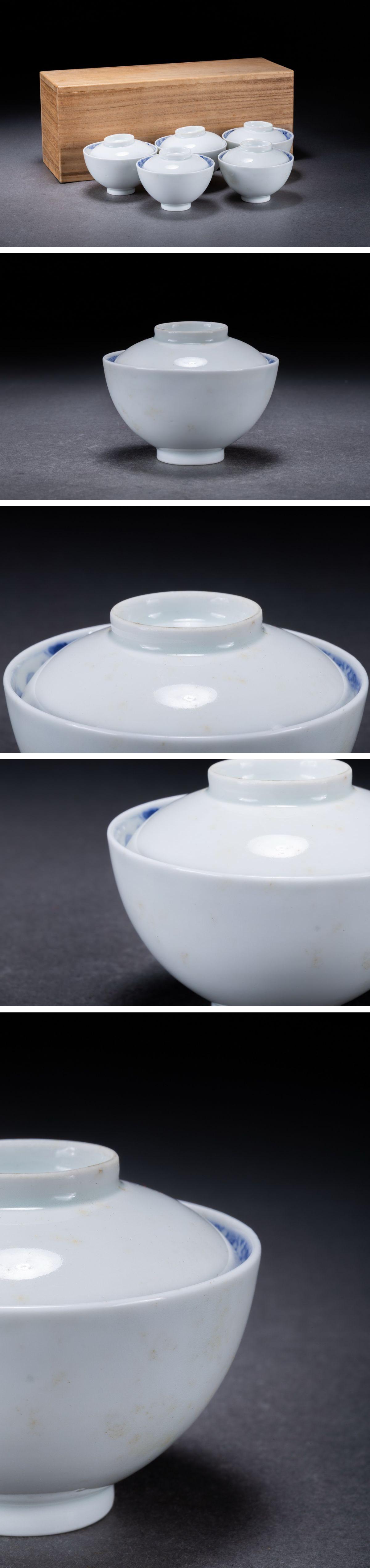 【華】時代舊藏 時代物 古瀬戸焼 内絵染津山水紋蓋茶碗五客 共箱 茶煎道具 時代物 古美術 骨董品A25070301-TQ