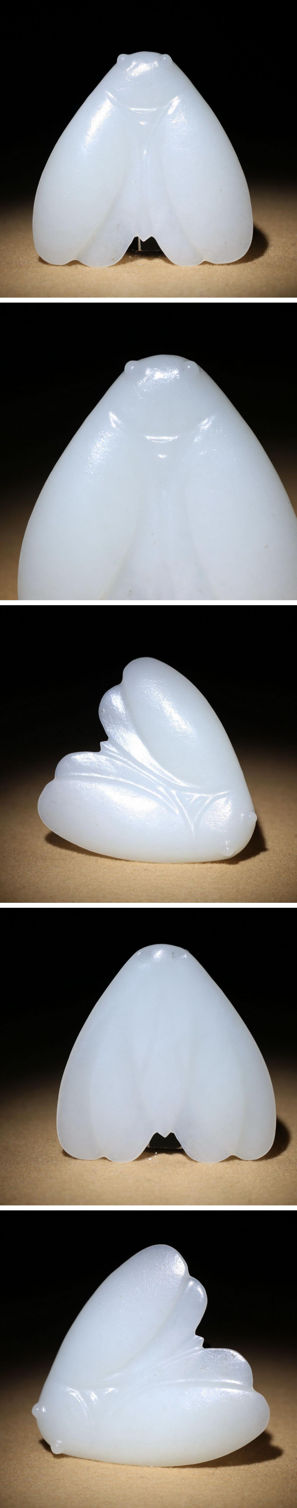 【清】某収集家放出品 清時代 和田玉 羊脂白玉蝉彫り物 材質保証 中国伝来 当時物保証 古美術 骨董品7L10-MD3