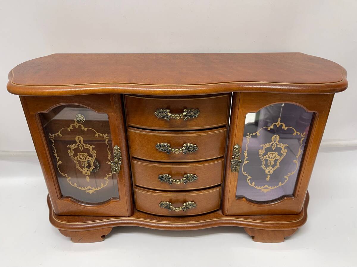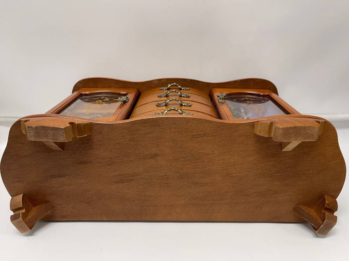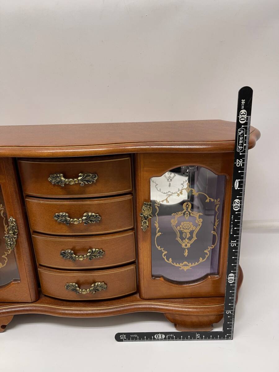 中古 アンティーク レトロ 約幅49㎝ オルゴール付 骨董 宝石箱 木製 ジュエリー ボックス アクセサリー ケース 収納 鏡付き WBM-2140 收藏