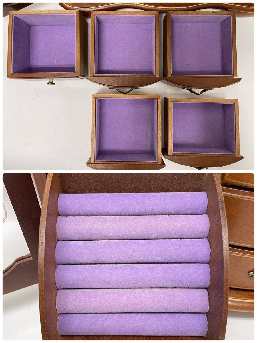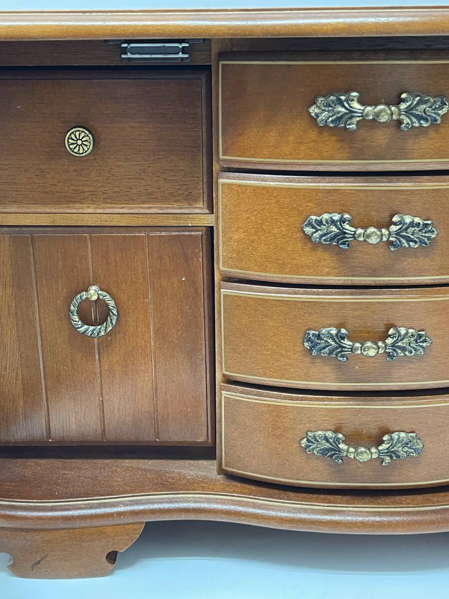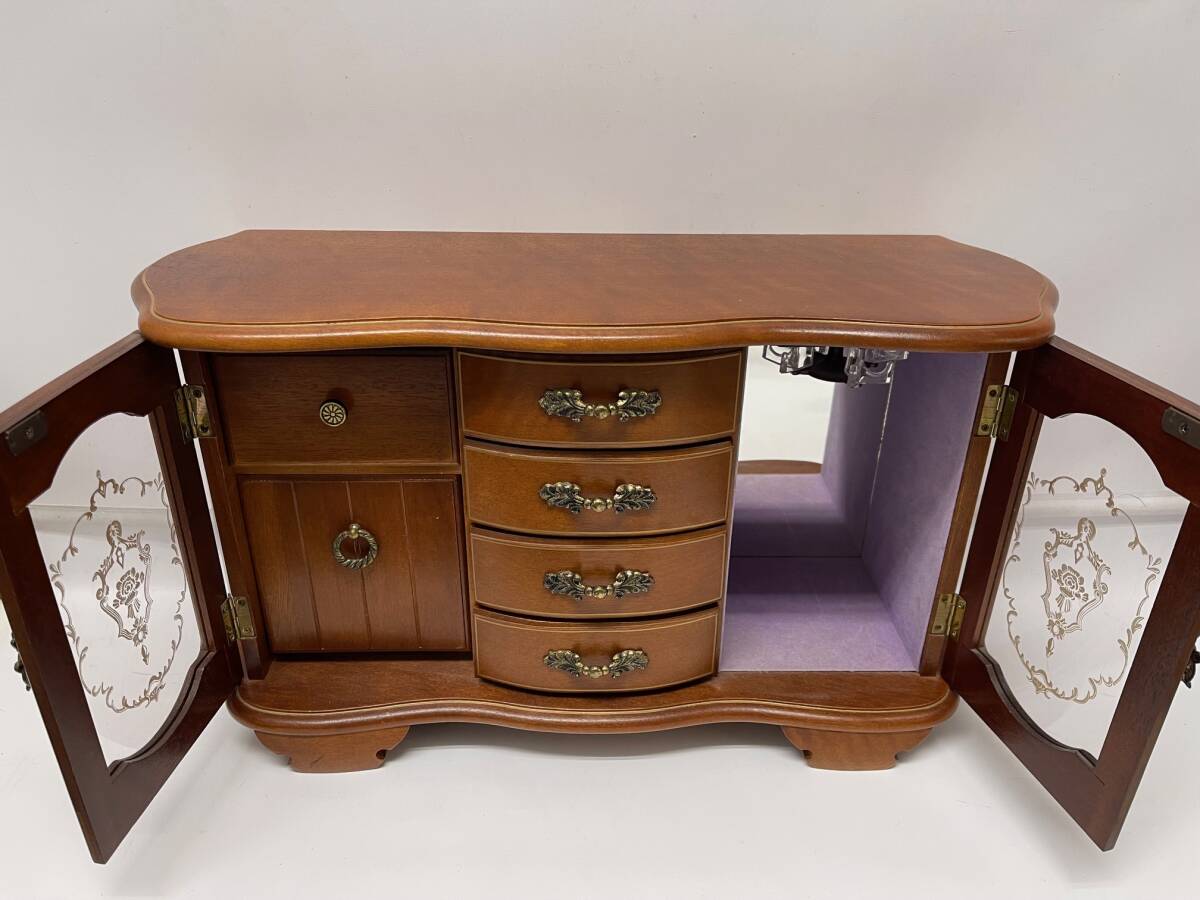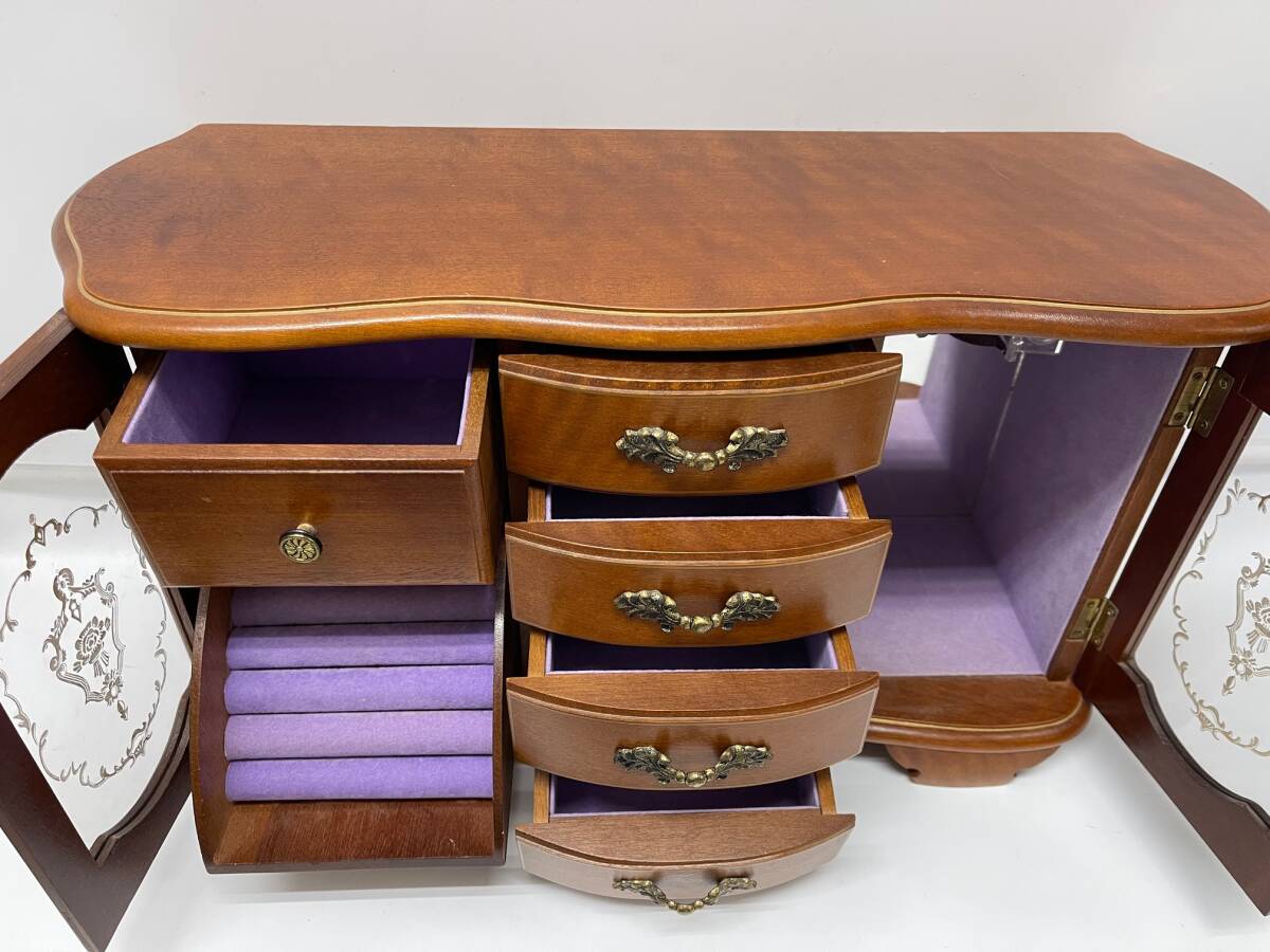 中古 アンティーク レトロ 約幅49㎝ オルゴール付 骨董 宝石箱 木製 ジュエリー ボックス アクセサリー ケース 収納 鏡付き WBM-2140 收藏
