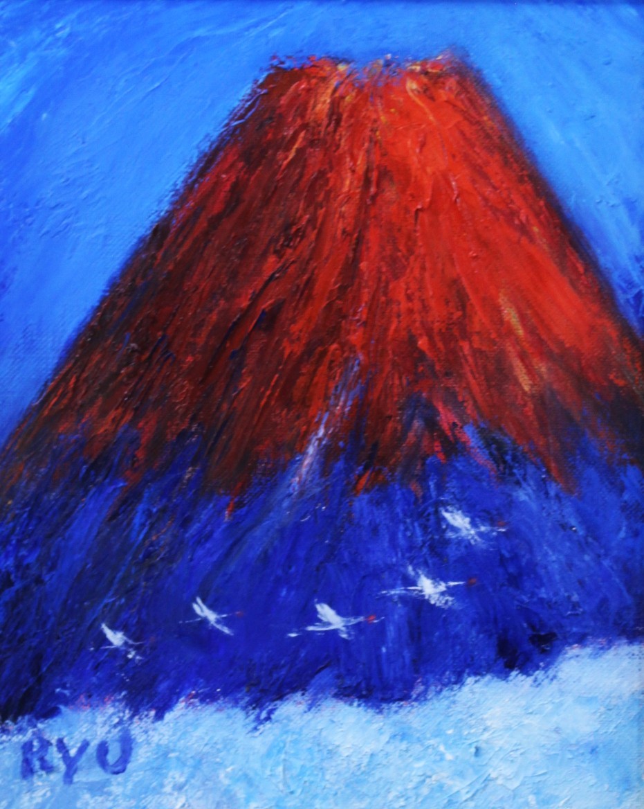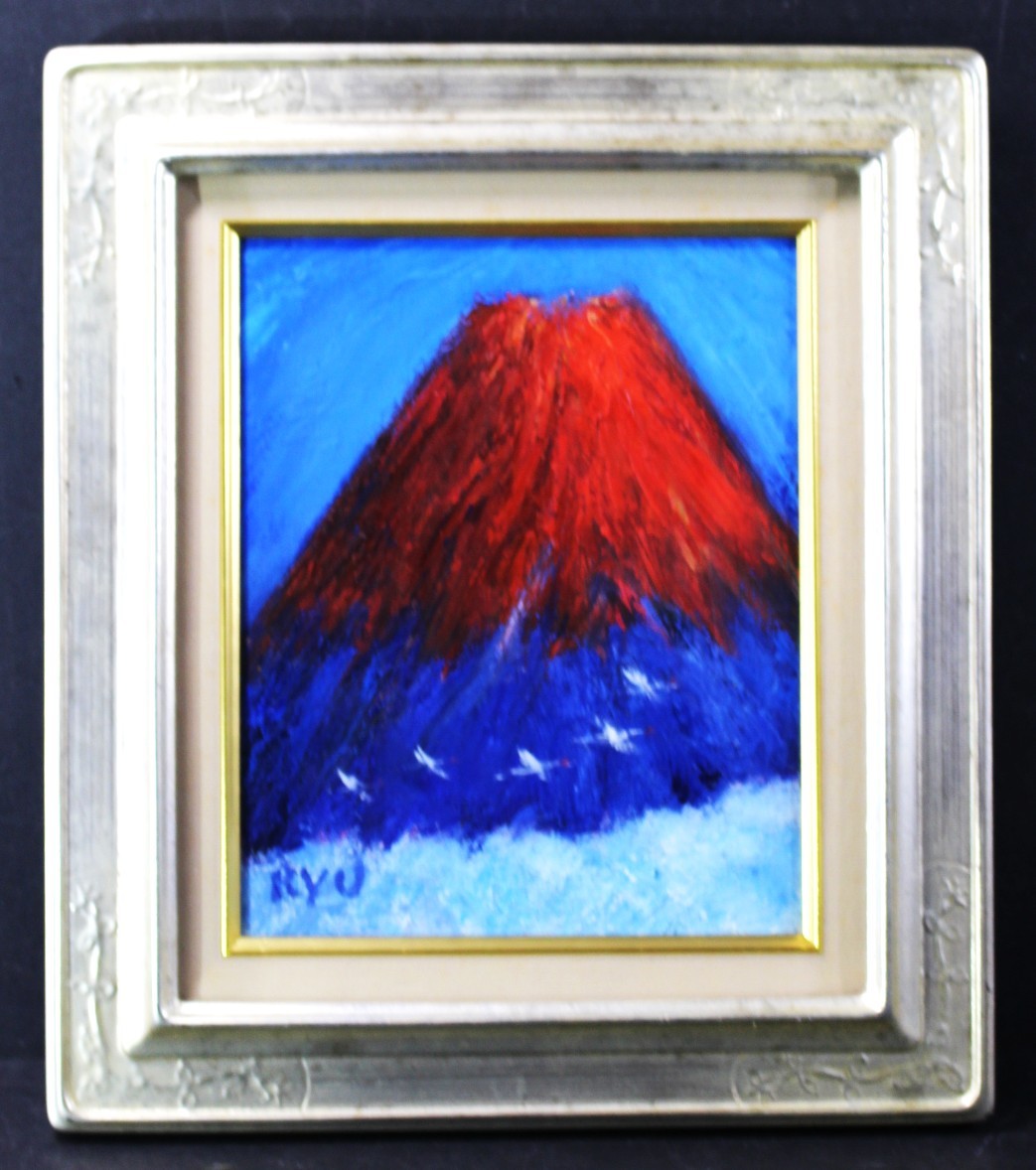 《真作》★宇高 龍【富士越の鶴】油彩.3号*二科展特選*現代展*国際青美展*元新芸術創立委員*欧州遊学*鮮やかな色彩*愛媛.松山*[桃] 收藏