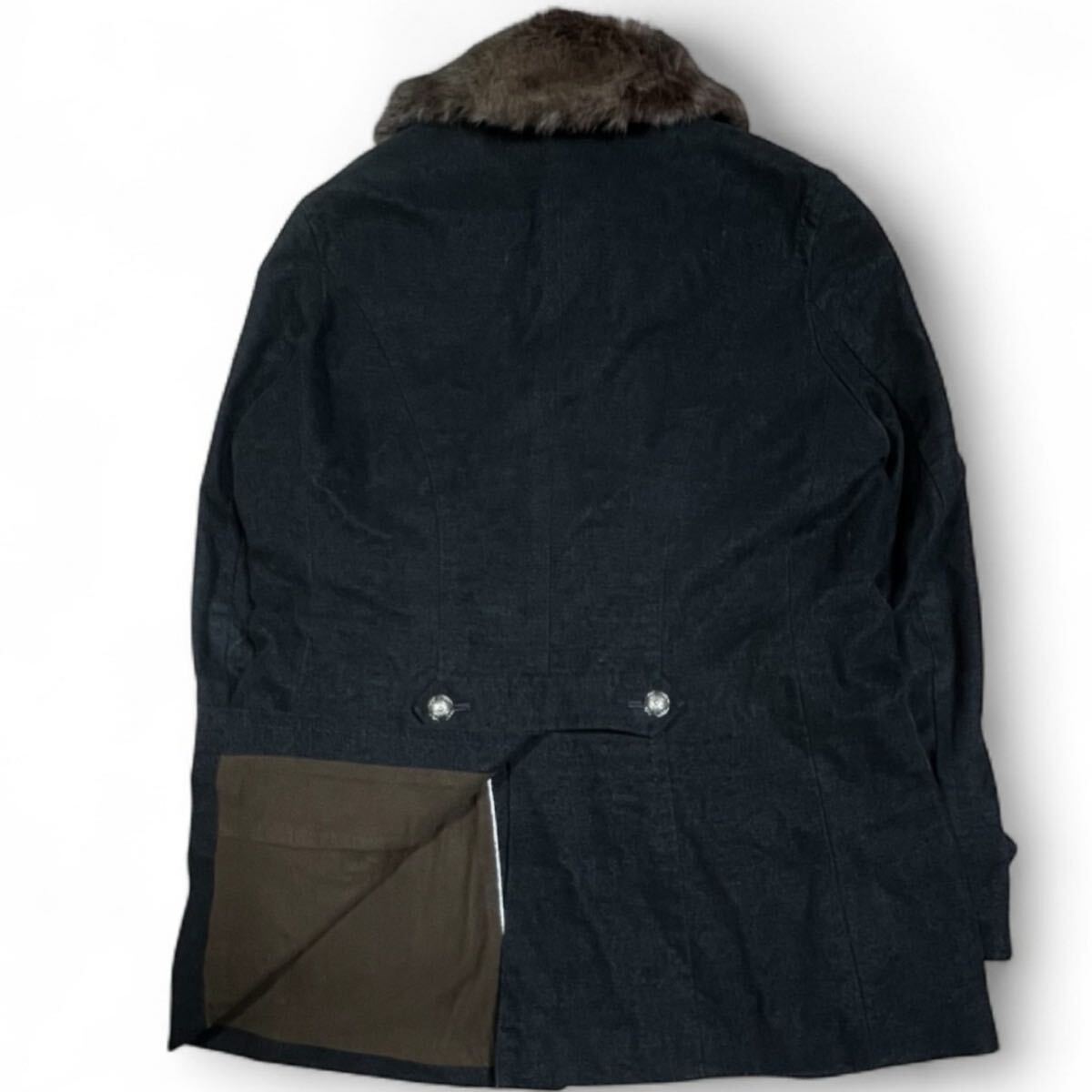SABI SABI DELUX 美シルエット ナポレオンジャケット コート 50 黒 イタリア製生地 メタルクルミボタン レナウン 脱着可/リアルファー 收藏