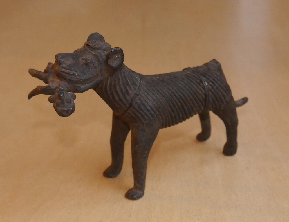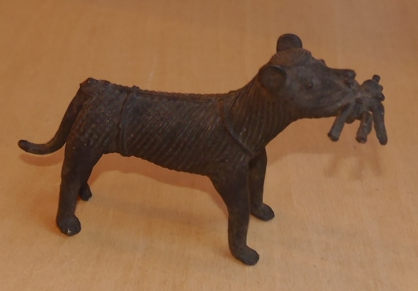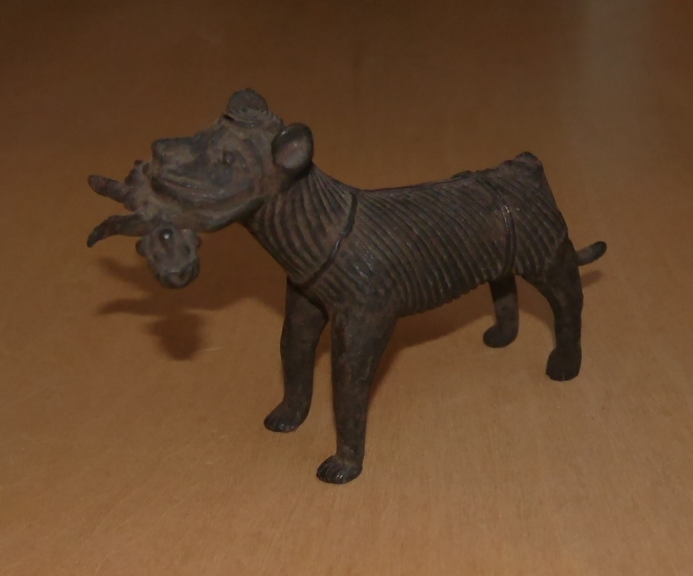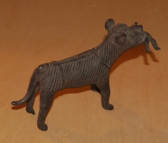 骨董品インド民芸品ライオン狼トラ虎アンティーク小物ビンテージ古い置物おおかみ獅子 真鍮 神話 伝説 風水 子宝 子供 安産 祈願 東洋 鉄器 收藏