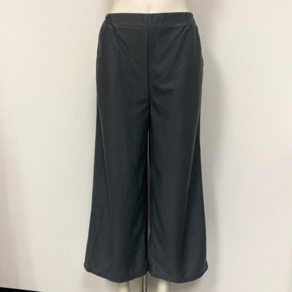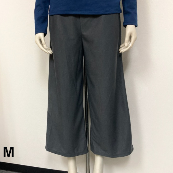 即決新品 レディース 脚長 コーディロイワイドパンツ 薄手 M チャコール 送料無料 收藏