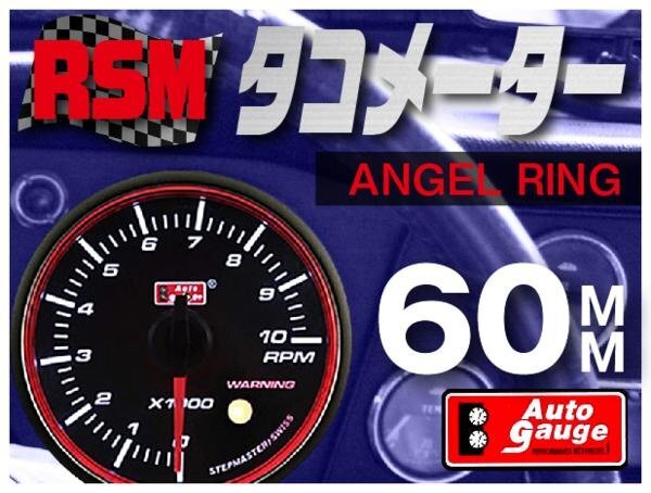 オートゲージ タコメーター 60Φ RSM スイス製モーター スモークレンズ エンジェルリング ワーニング機能 オープニングセレモニー 60mm 收藏