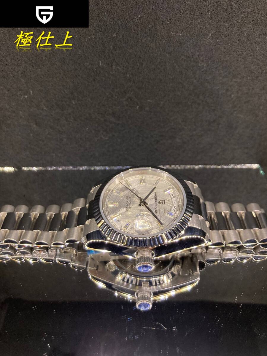 ■極仕上/調整済/10日保証/新品に極めて近い1回使用USED/中古品(機械式時計)デイデイトオマージュ/ギベオン/メテオライト風/D型ジュエリーブレス