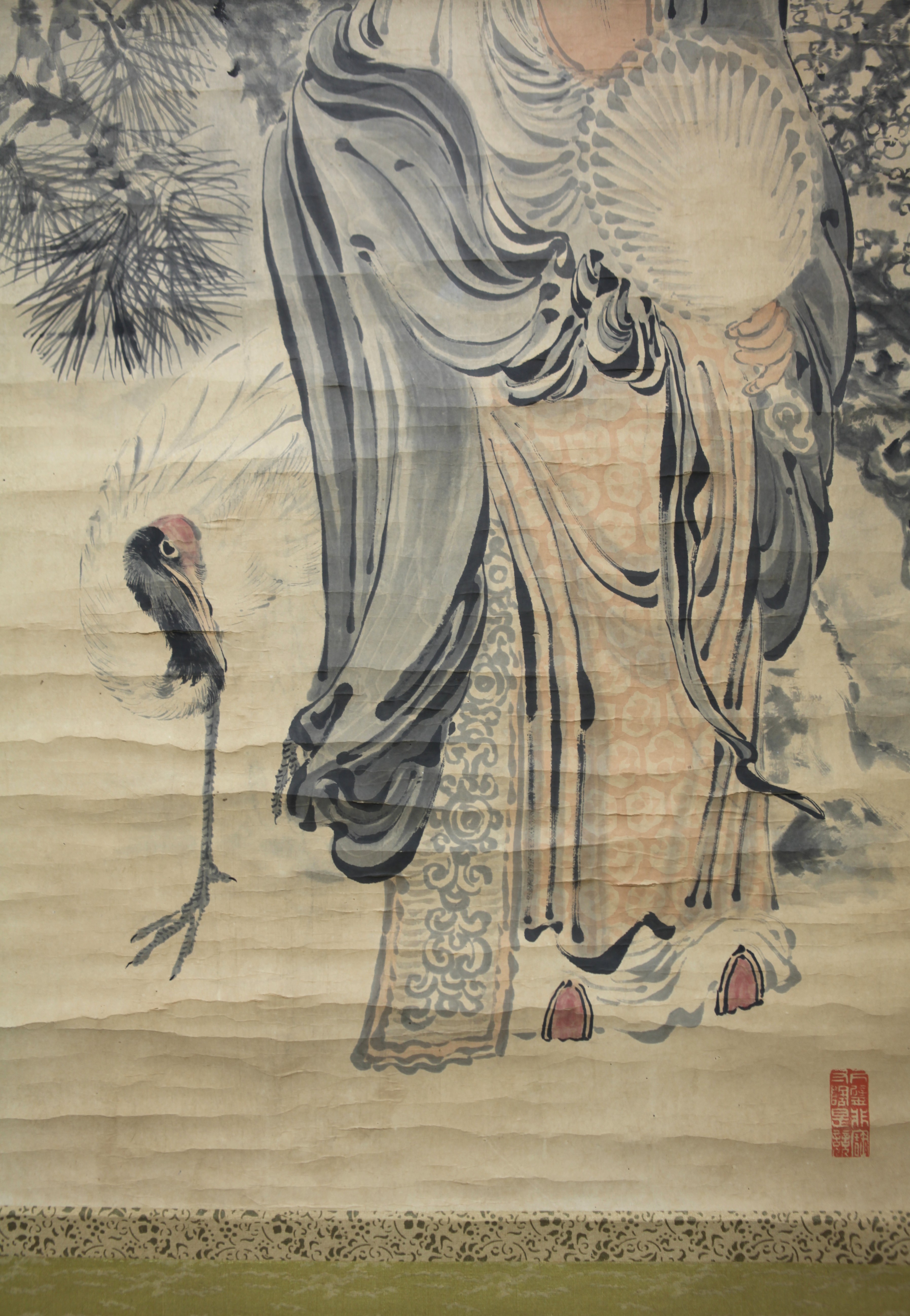 作品のダメージにつきましては、すべての出品物は骨董品、中古品ですので説明しきれない時代物としてのシミ・イタミ・シワ・剥脱・ヤブレ・ヤケ・変色等見られます。目立つダメージは明記しておりますが、画像では見にくい細かなダメージがある場合がございます。骨董品・美術品としての特性としてご理解いただけます場合のみご入札をお願いいたします。