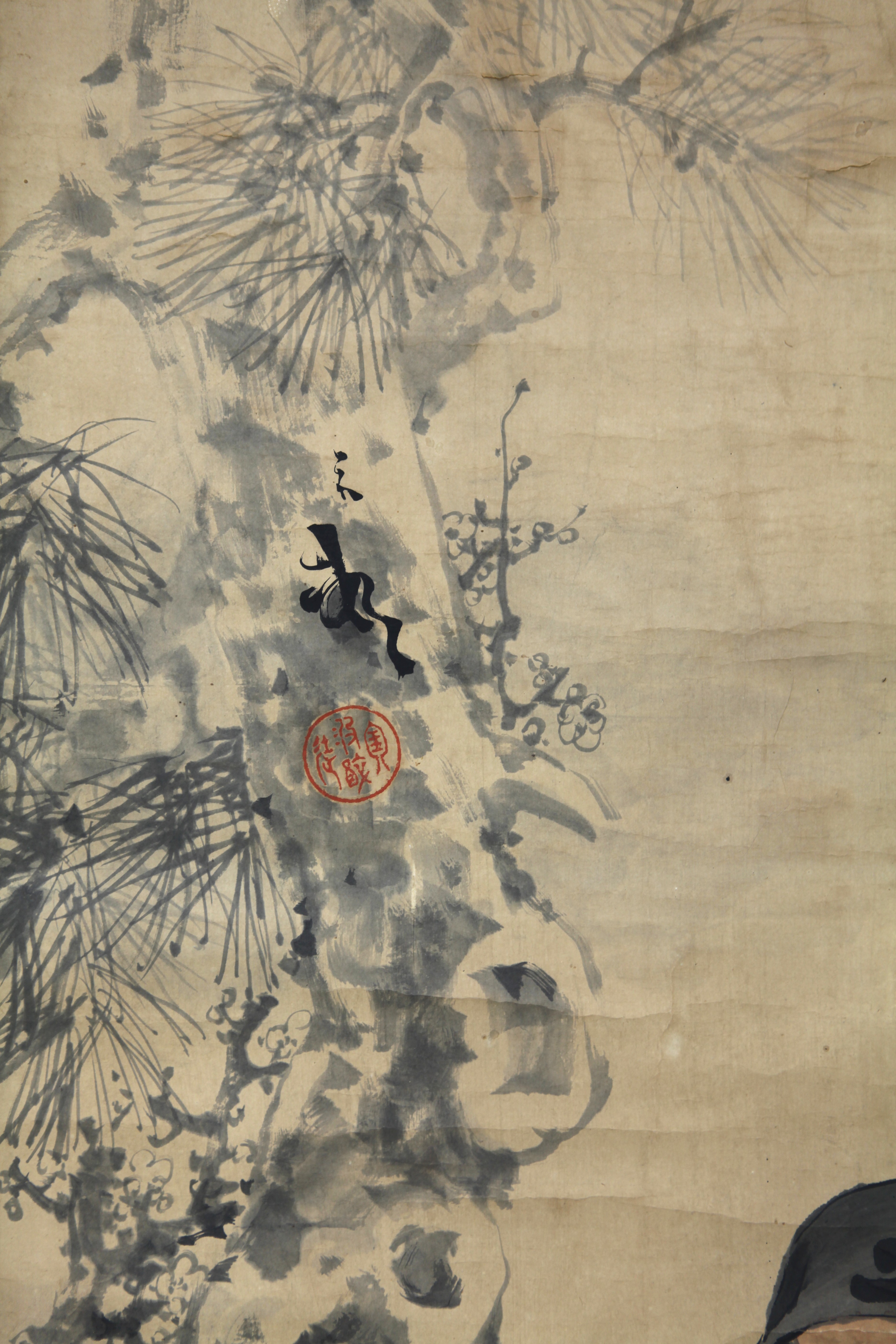 【真作】【風車】 作者不明 「梅妻鶴子図」◎肉筆紙本◎日本画 中国画 南画 人物画 物語 伝説