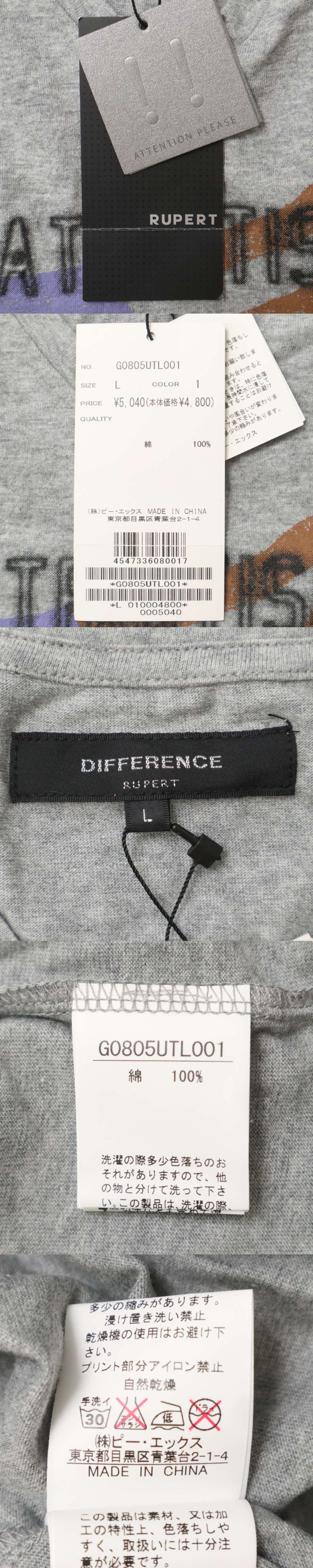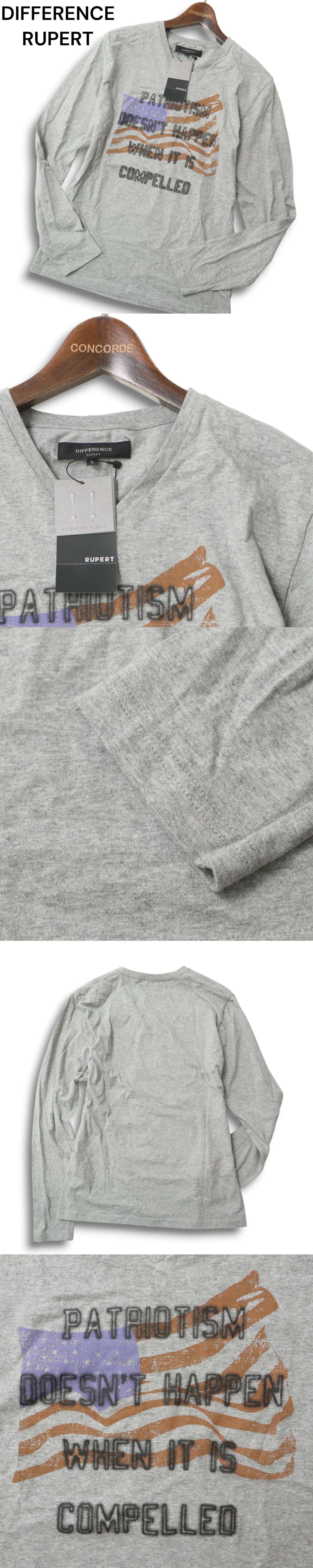 【新品 未使用】 DIFFERENCE RUPERT ルパート 英字 星条旗★ プリント 長袖 カットソー ロンTシャツ Sz.L メンズ グレー 收藏