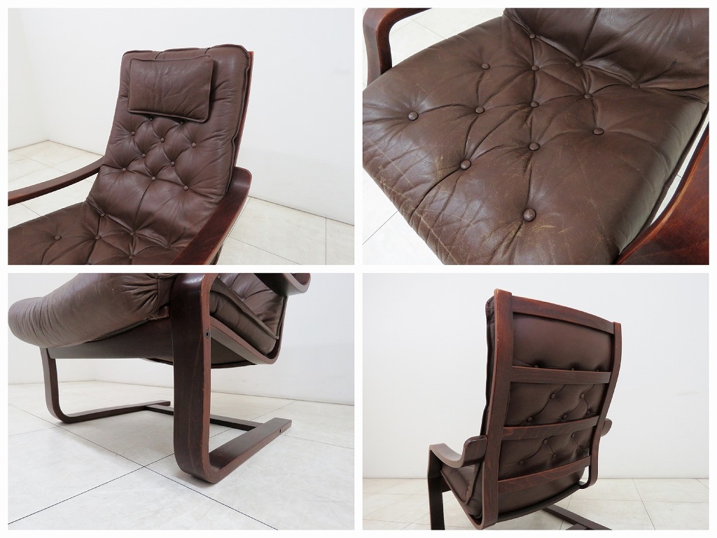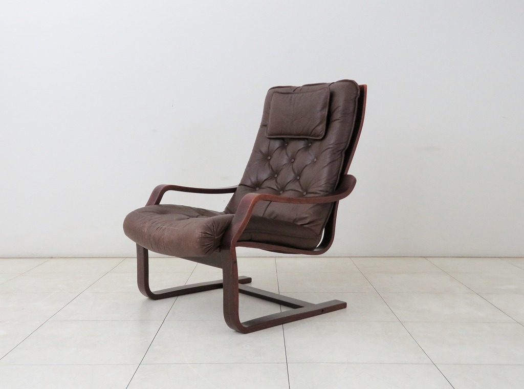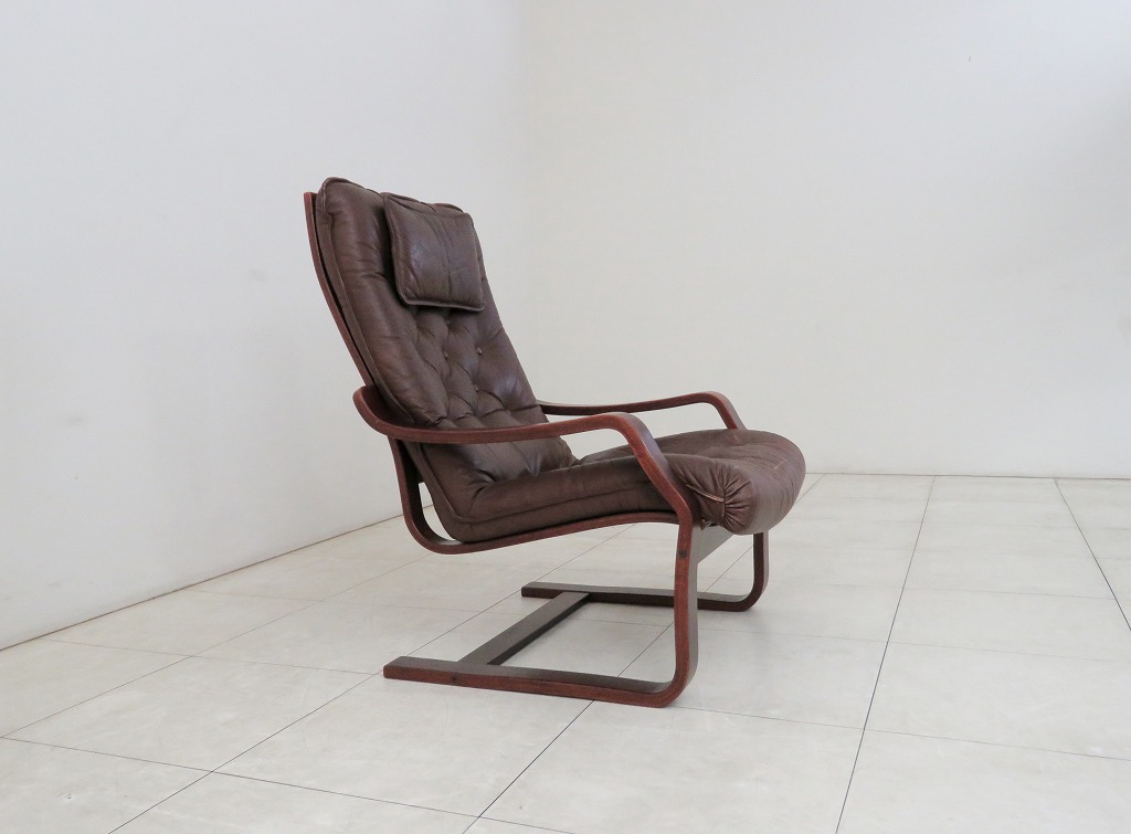 北欧 スウェーデン 70s ヴィンテージ 本革 ラウンジチェア カンティレバー ハイバック 1人掛け シングルソファ 收藏