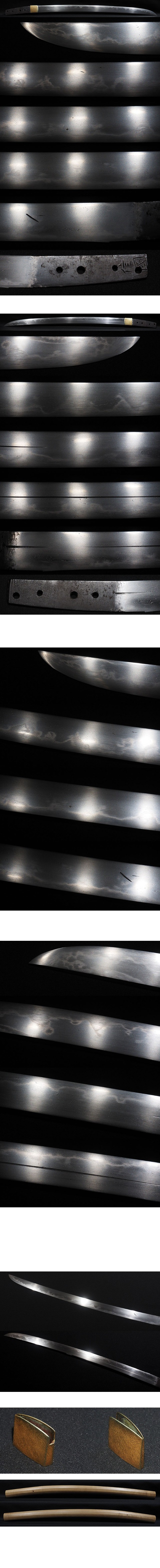 信国 覇気ある迫力満点の乱刃の一振り 刃こぼれのない堂々とした体配の平造りの刀身 金着一重ハバキ 收藏