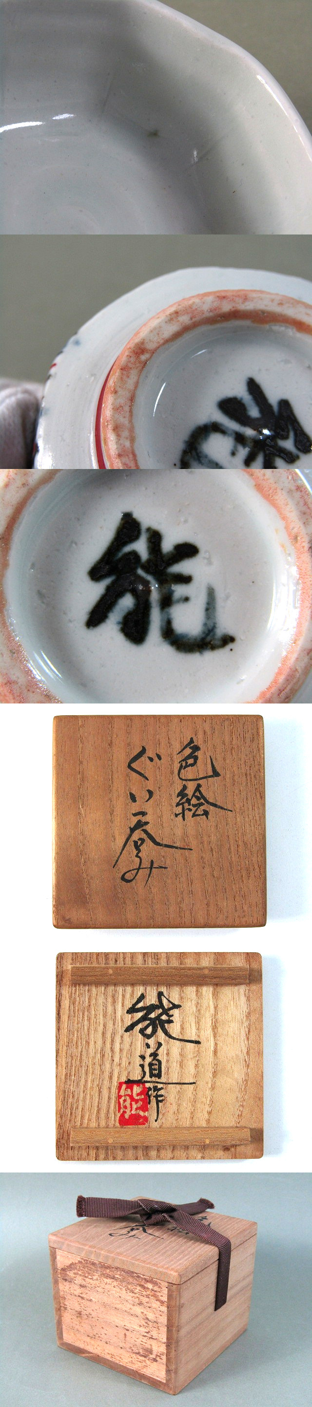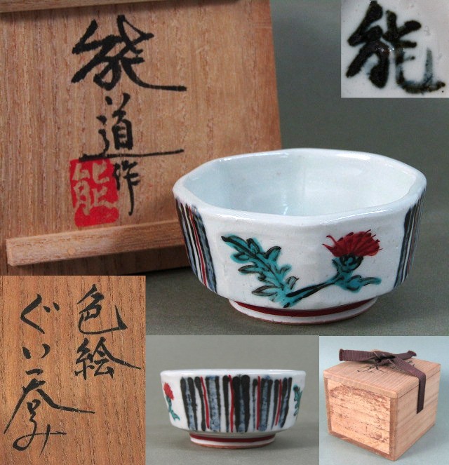 人間国宝 藤本能道 作 色絵 ぐい呑み 共箱【説明欄に詳細写真有り】の出品です。