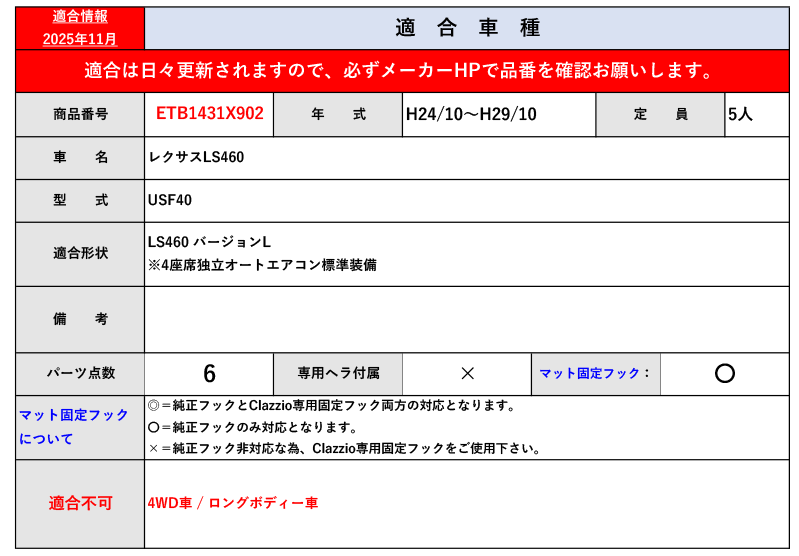 [クラッツィオ]USF40 レクサスLS460_バージョンL(H24/10~H29/10)用カスタムフロアマット(ラゲッジ無)[ETB1431X902] 收藏