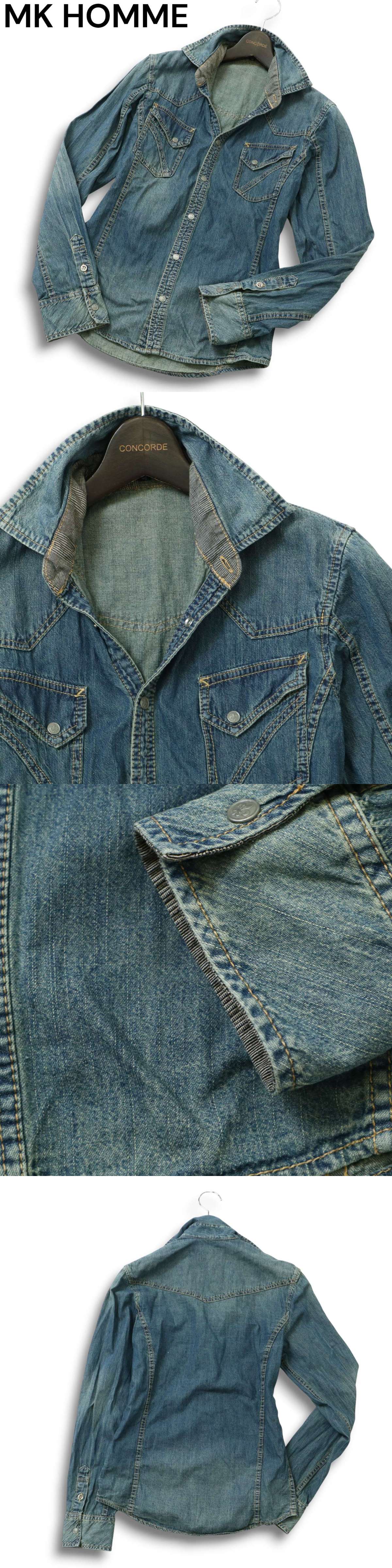 MK HOMME ミッシェルクラン オム 通年★ USED加工 長袖 ウエスタン デニム シャツ Sz.46 メンズ 收藏