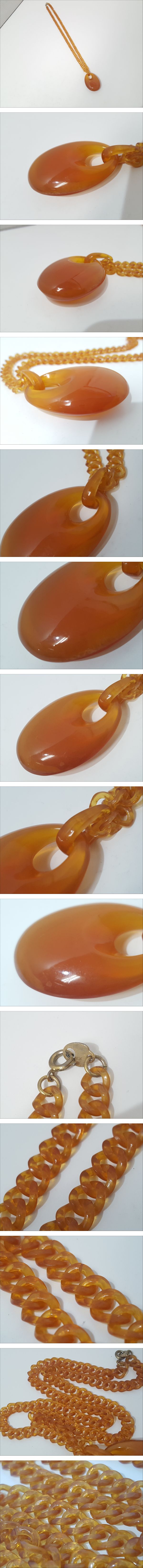 アンバー デザインネックレス/大粒/琥珀/トップ約5.5×3.2cm/チェーン約56cm/約18.5g/こはく/06KO112204 收藏