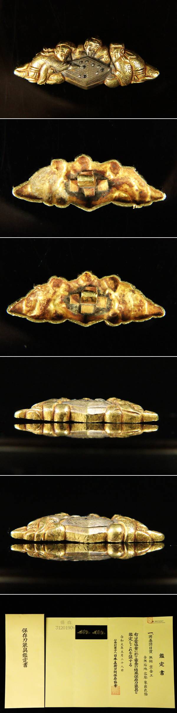 【ASAHI】最上級小道具特集 金無垢地!保存刀装具 江戸時代『京金工』金無垢地囲碁図容彫目貫 金保証 18金鑑定済み[711142wtp] 收藏
