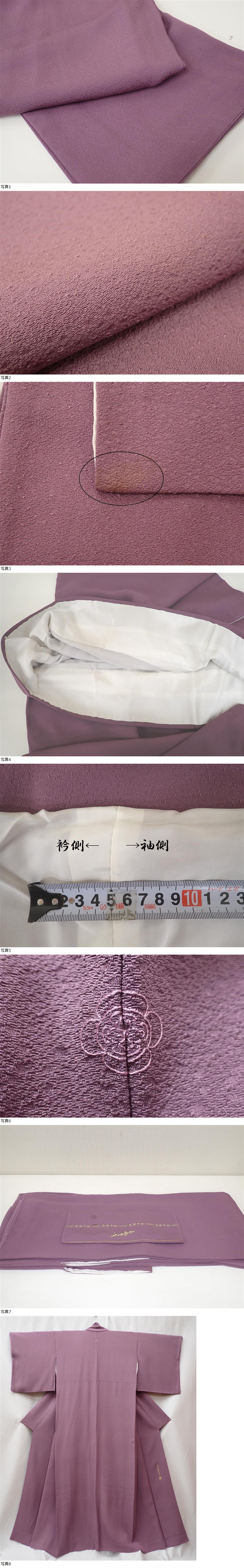 友禅作家 千地泰弘 落款 色無地 訪問着 身丈155.5cm(+8cm) 裄丈64.5cm 古代紫 一つ紋 友禅千地 和装 和服 着物 Z11111 收藏