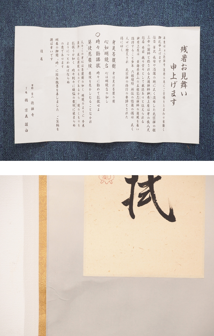 【真筆】【渡鹿庵】[橘宗義] 16967 掛軸 一行書 「時々勤払拭」 合箱 紙本 京都 埼玉 花園大学 臨済宗 大徳寺 在銘 收藏