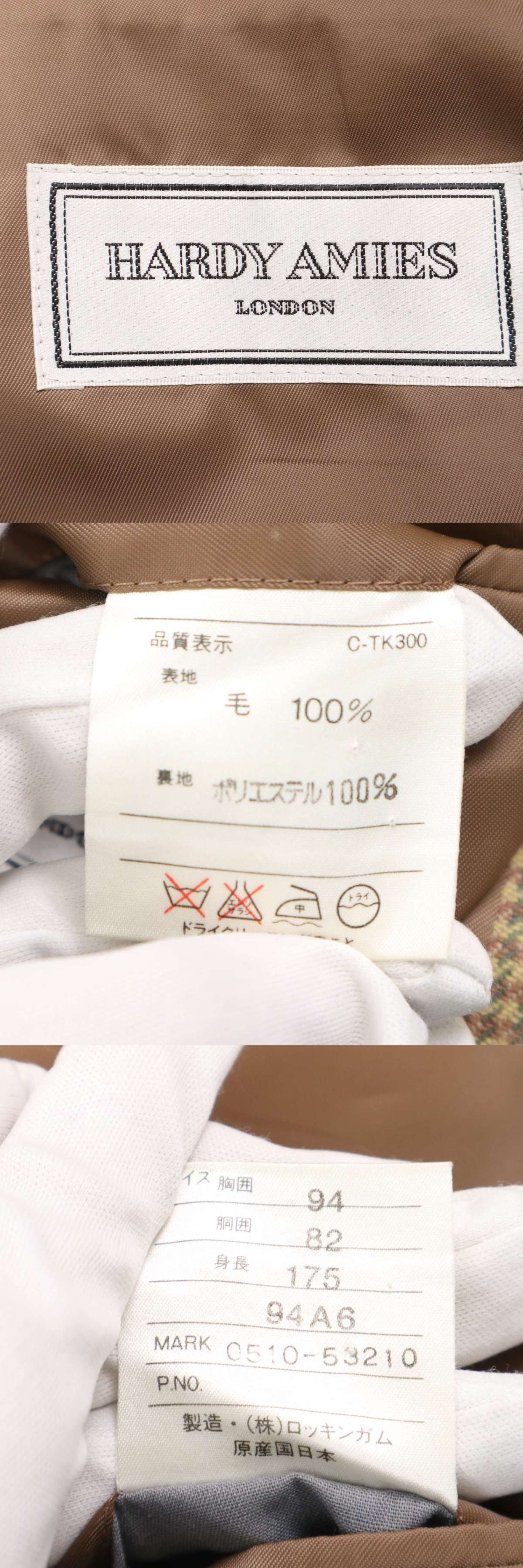 Hardy Amies ハーディ エイミス 秋冬★ ウール100% ツイード 千鳥柄 テーラード ジャケット ブレザー Sz.94A6 メンズ 收藏