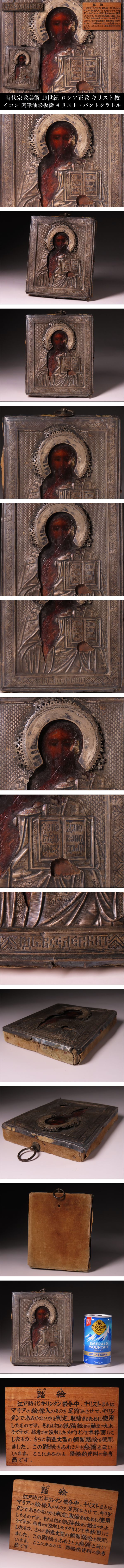 | Lot.20251204SI251125PS2 ※ご入札いただいた時点で下記記載事項全てにご了承いただいたものとさせていただきます。 ※商品タイトルは当方判断に基づき記載しております。また単にキーワードとして記載している場合もございますので予めご了承ください。 【ONE'S】時代宗教美術 19世紀 ロシア正教 キリスト教 イコン 肉筆油彩板絵 キリスト・パントクラトル 踏絵 説明板付 なかなかお目にかかることのないお品物をこの一期一会のご機会にぜひ。 【サイズ】 高さ(H):約13.5cm 横幅(W):約11.5cm 奥行(D):約2.2cm 【重量】 約180g 説明板 高さ(H):約16cm 横幅(W):約22.3cm 奥行(D):約2.5cm ※当方が測ったものですので、若干の誤差がある場合がございます。 【商品状態】 掲載画像をご覧下さい。 あくまでも年代物かつ一度人の手に渡っているお品物のため、傷、汚れ、変色、欠け、経年による劣化等があるものとお考えいただき、神経質な方のご入札はお控えください。 PC上の画像と商品の色目が若干異なる場合がございます。 説明文に記載のある品物や写真に写っているもの以外は基本的に付属致しておりません。 落札後のトラブルを避ける為にも、説明文および画像をよくご覧になってから、ご入札のほどよろしくお願い致します。 商品状態の記載に関してはあくまでも当方判断基準となっております。 状態等の詳細は写真をご確認いただき購入者各自のご判断にてご入札ください。 | |||