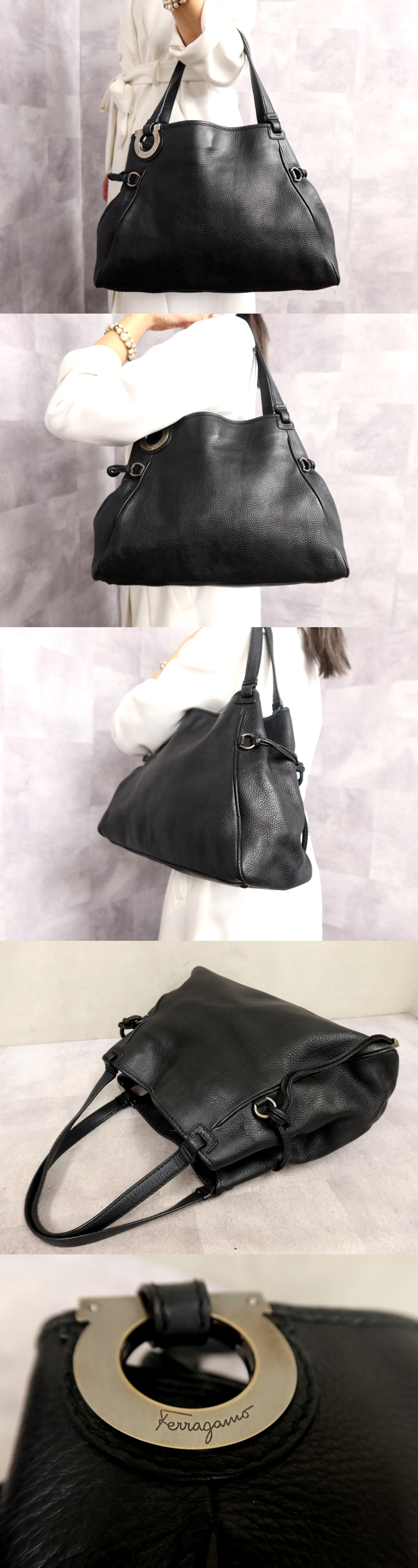 ●超美品●Salvatore Ferragamo フェラガモ●ガンチーニ●カーフ レザー 本革●トート バッグ●黒●シルバー金具●B5 収納 かばん●Js63144 收藏
