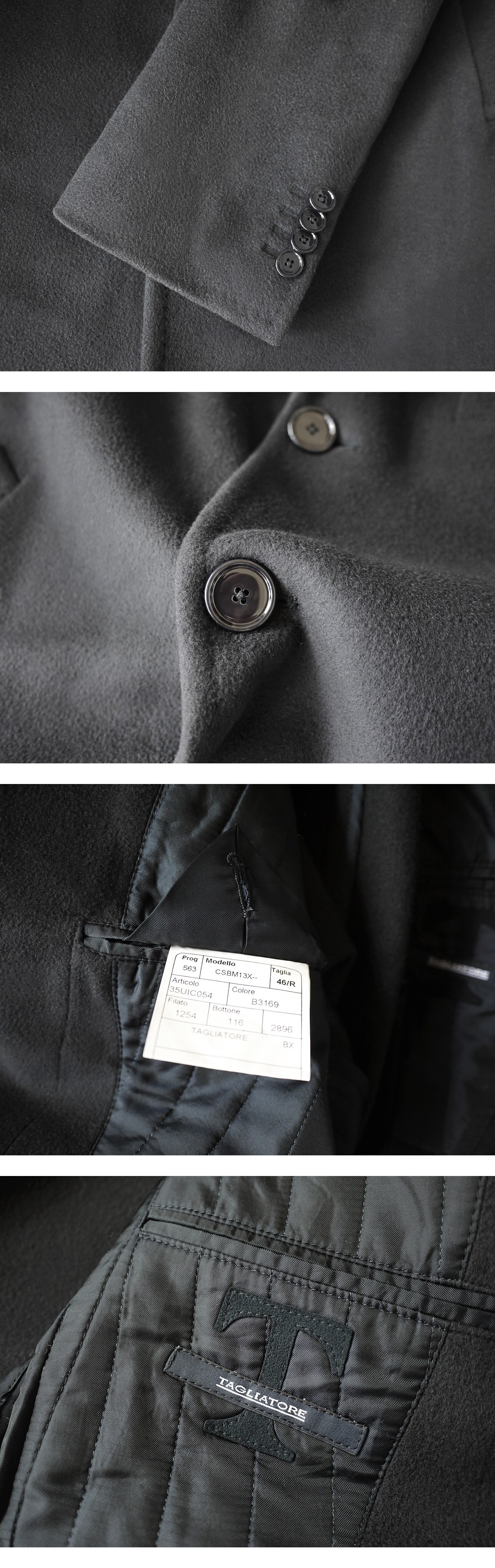タリアトーレのカシミアブレンドウールメルトンチェスターコートでございます。TAGLIATOREはバーニーズや伊勢丹等で取り扱われる、クラシックなエレガンスを保ちながらモダンな雰囲気を持ち合わせた、世界中のファッショニスタに長く愛されるサルトリアブランドです。
