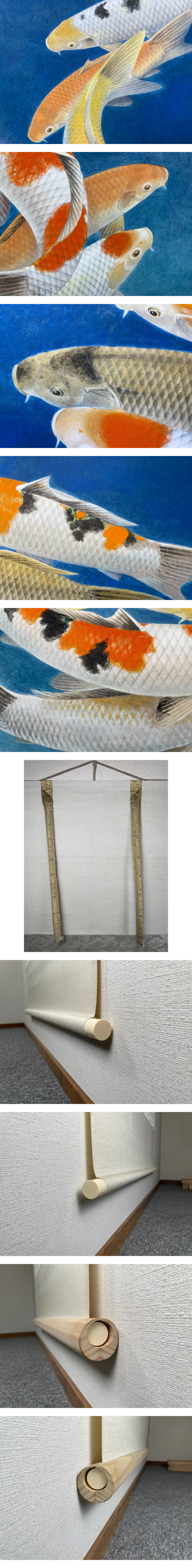 A828【真作】超大幅 前川聖牛 金銘 群鯉 掛軸◇太巻き付 共箱 二重箱 大幅 鯉の群 日本画 縁起物 絵画 美術品 骨董 收藏