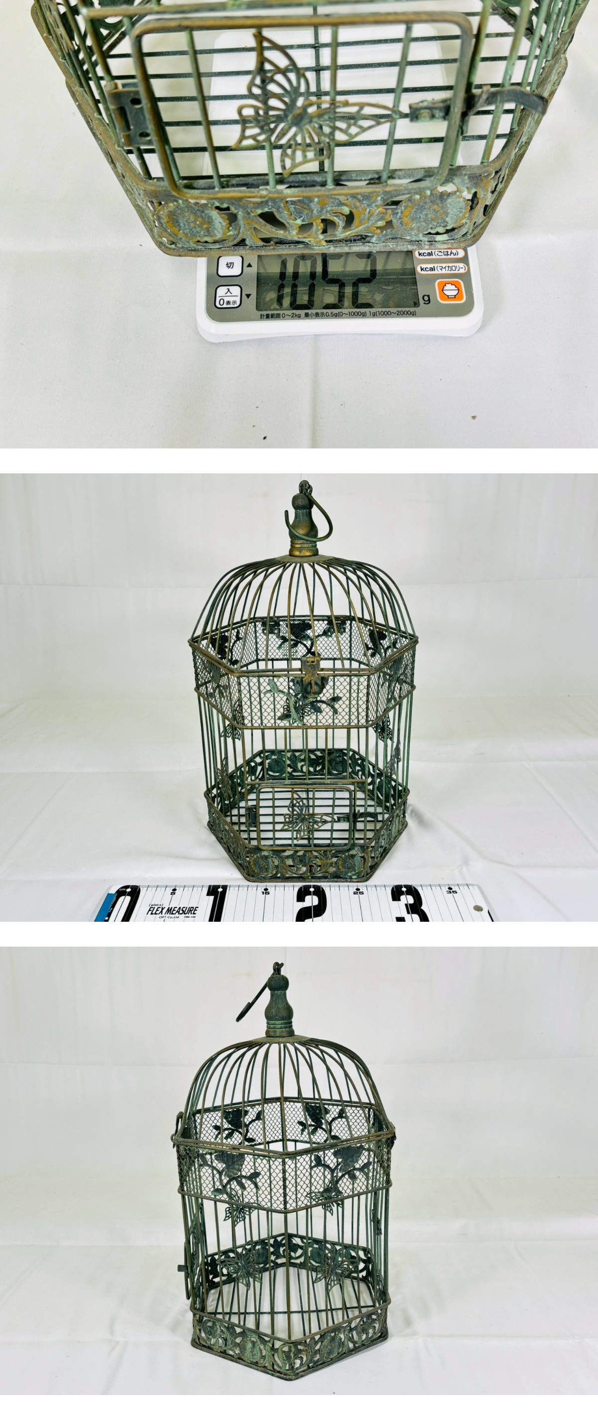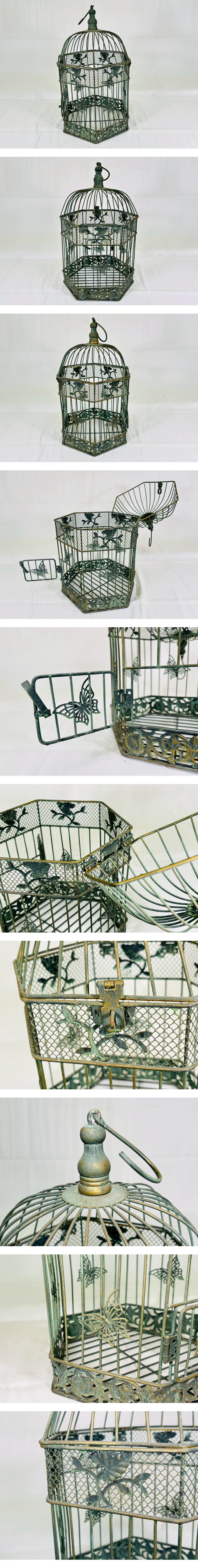 【希少】アンティーク調 鳥かご オブジェ 蝶 花 彫刻 シャビーシック 存在感抜群 インテリア ゲージ 置物 飾り 華やか バタフライ 收藏