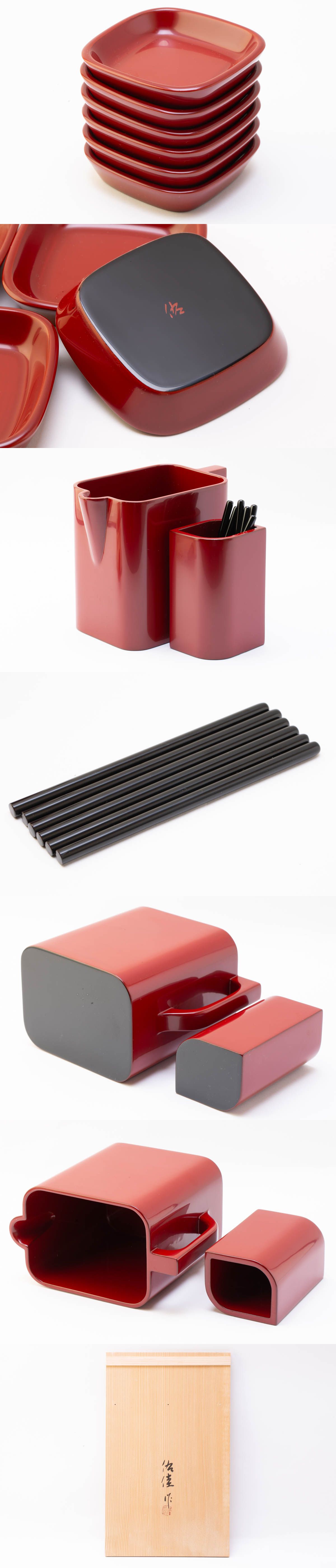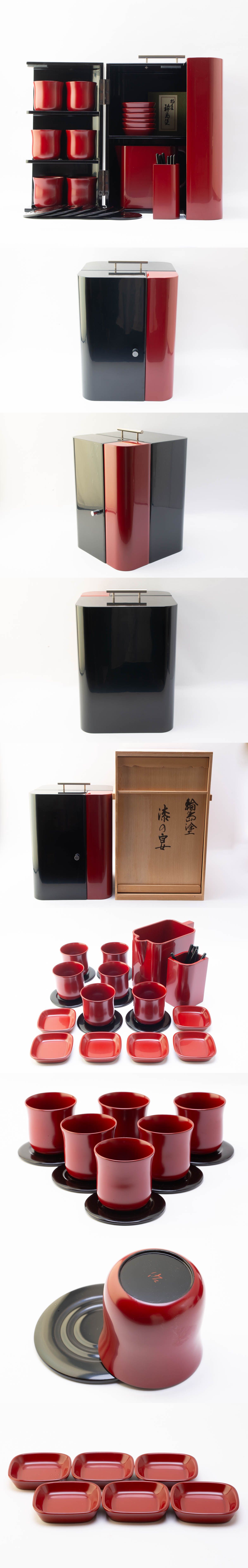 輪島塗 市中佑佳造 「漆の宴」 カップ コースター 小皿 水注 マドラー 酒器 水割り 漆器 漆芸 伝統工芸 共箱付 計26点セット #39080 收藏
