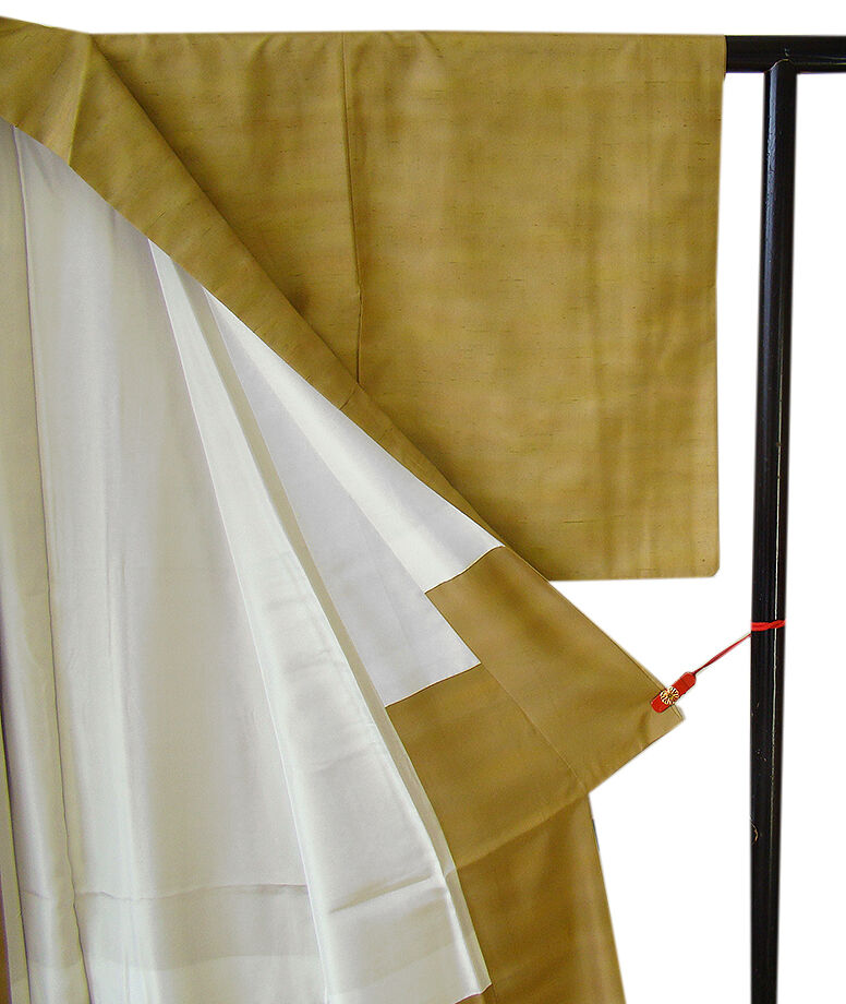 | 商品説明 | こちらのお品は「袷」でございますので、10月~5月までお召頂ければと思います。 白山紬は、石川県白峰町で織出された紬(現在の牛首紬)でしたが、今は金沢市近郊にある 織元独自の登録商標となっています。 艶感がったっぷりあり裾さばきの良さ等は牛首紬に勝るとも劣らぬ 豪華な高級感溢れる質感があります。 紬でありながらもシャリ感やハリのある艶やかさを備えた白山紬の紬着尺です。 白山紬の情感を感じる節糸使いの、大変にさらりとしたしなやかな風合いが心地よく、 織りあげられた美しい紬地を、深みと奥行きに溢れたお顔映りも上品な彩美に染め上げました。 上品な金茶色地に無地ぼかし、 八掛は共色(正絹)、幅広い年代の方にお召頂けます。 |