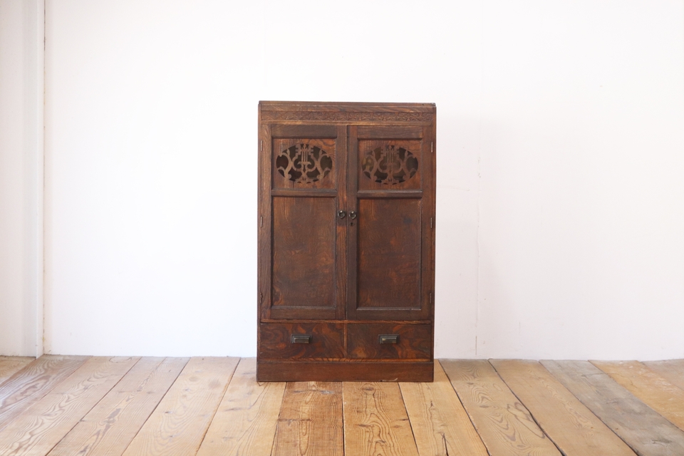 レトロ 小振り ガラスキャビネット 本箱 収納 ラック 引き出し 抽斗 2杯 木製 ヴィンテージ/食器棚アンティーク英国/PLT16129 收藏