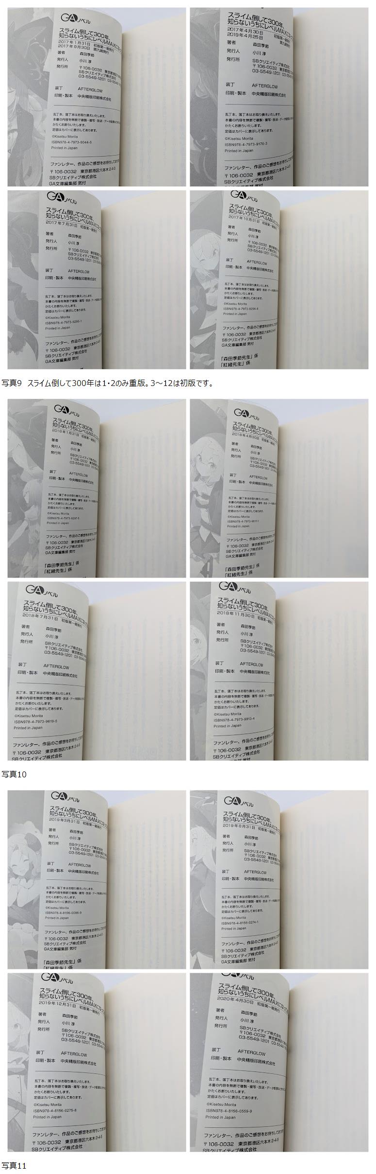 ◆スライム倒して300年は1~3巻は重版・残りは初版です(写真参照)